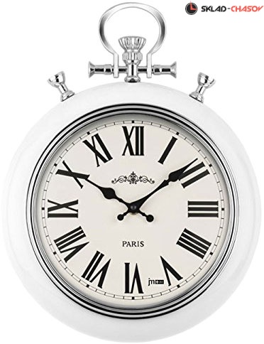 Кварцевые настенные часы в металлическом корпусе. Циферблат закрывает сферическое стекло. Корпуса часов создан по мотивам классических карманных часов 18го века.