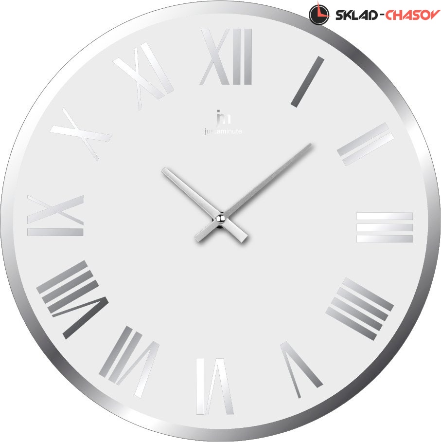 Кварцевые настенные часы в стеклянном корпусе с зеркальными римскими цифрами.