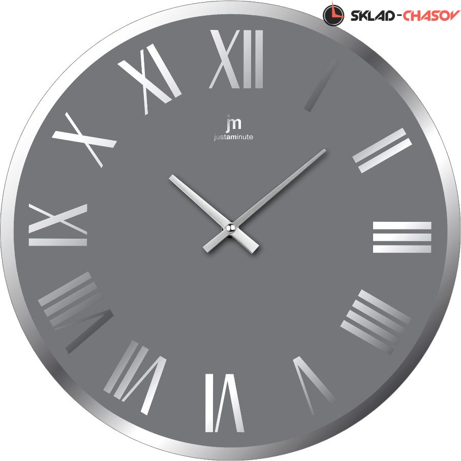Кварцевые настенные часы в стеклянном корпусе с зеркальными римскими цифрами.