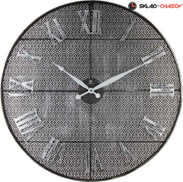 Настенные часы в сетчатом металлическом корпусе с рельефными римскими цифрами