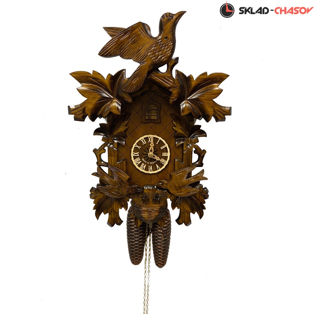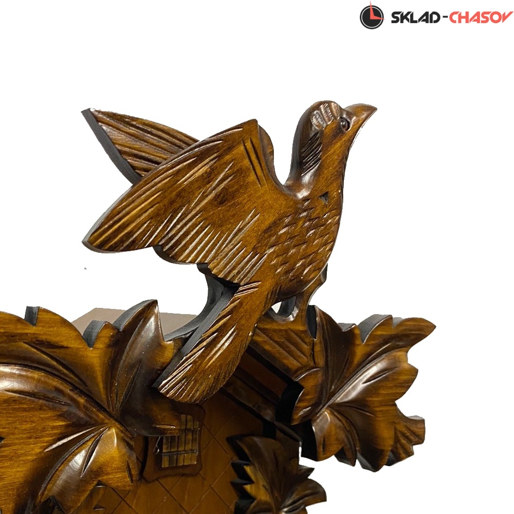 Часы механические с кукушкой SARS 0637/8-90 (Германия) имеют надежный немецкий механизм и безупречное качество сборки и производства. Фасад часов украшают птицы наверху и по бокам. Внизу композиции находится гнездо с птенцами.
