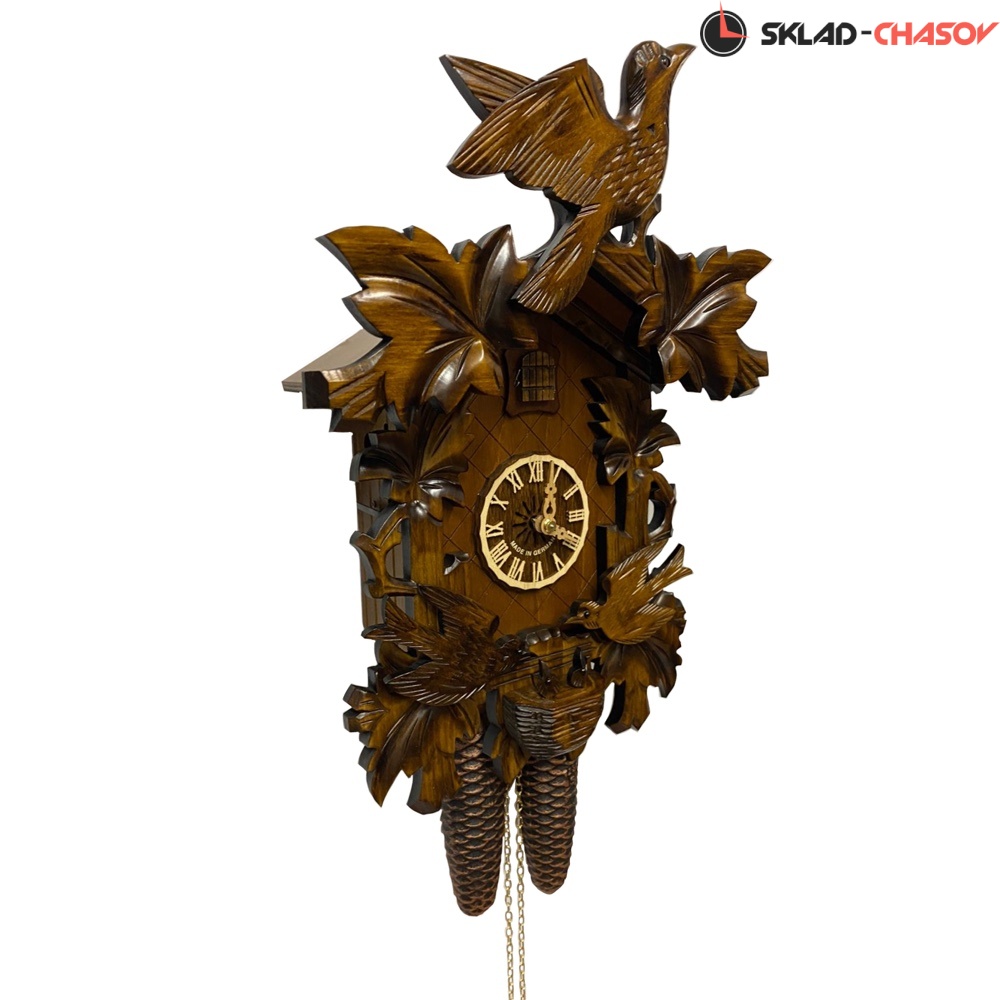Кукушка срабатывает каждый час. Механизм: механика. Завод на 8 дней Ночной режим. Размер: 40,5*26*14см. Высота без учета шишек: 40,5 см Корпус: дерево.