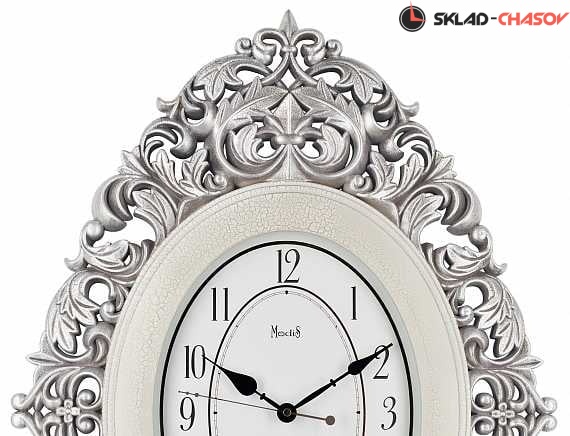 Изящные настенные часы Modis овальной формы симметрично украшены рельефным растительным орнаментом, окружающими циферблат с арабскими обозначениями и сдержанными стрелками. Часы с кварцевым механизмом изготовлены из пластика и тонированы в приятный антично-серебристый цвет с эффектом состаривания.