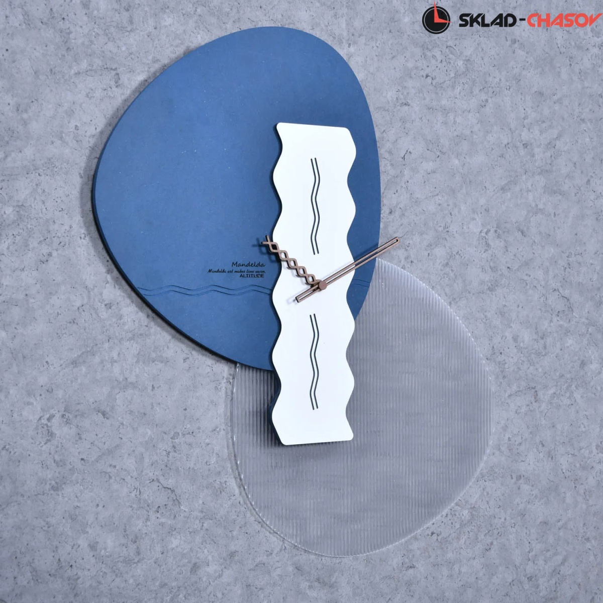 Настенные интерьерные часы от немецкого дизайнера Фридриха Кельна. Необычный дизайн украшает пространство стильного загородного дома или современной роскошной квартиры. "Лучше дома только дом" - вот идея создания. Изготовлено из мдф 2 цветов, отделяют дизайн стрелок с метками времени, часы с кварцевым механизмом, цифры показывают время.