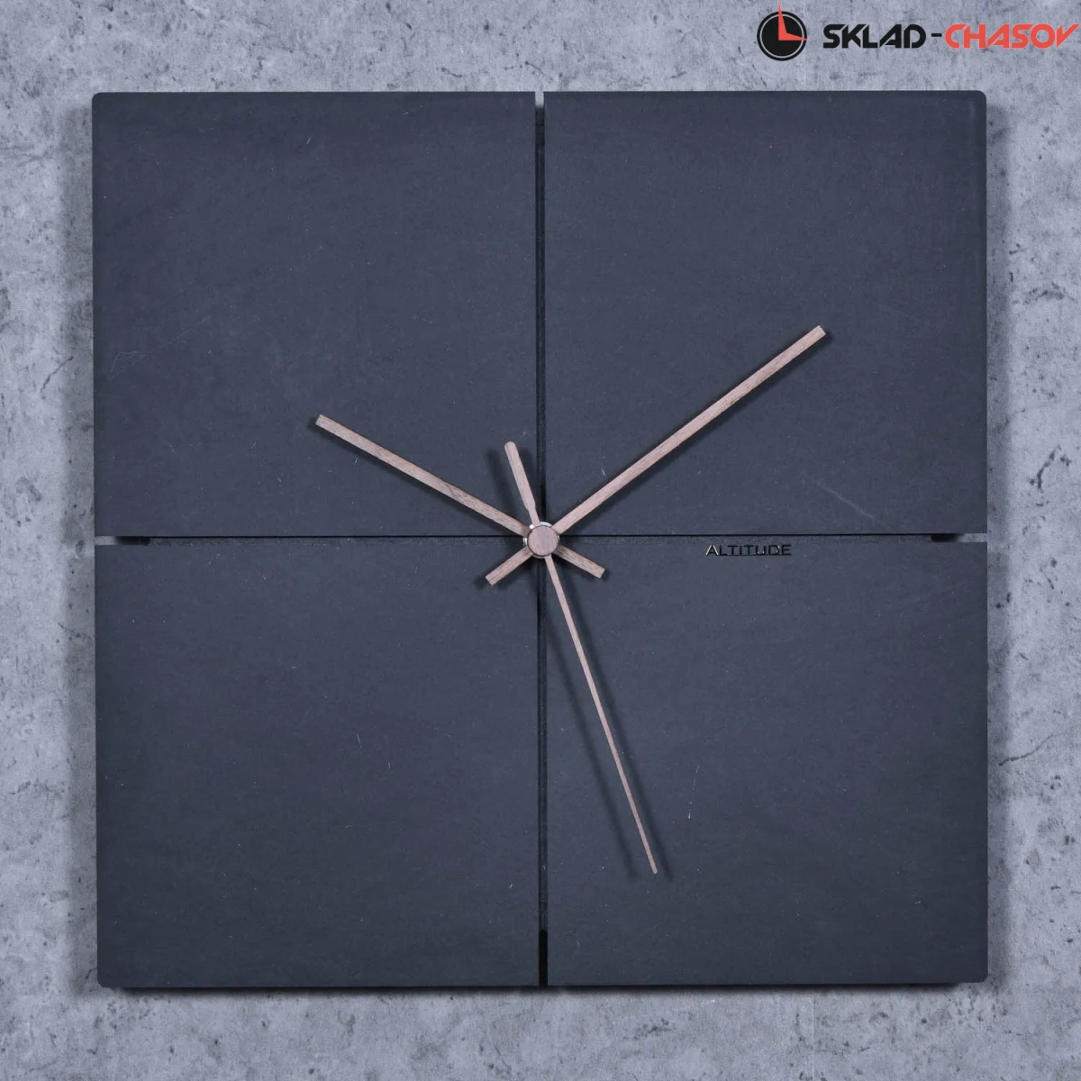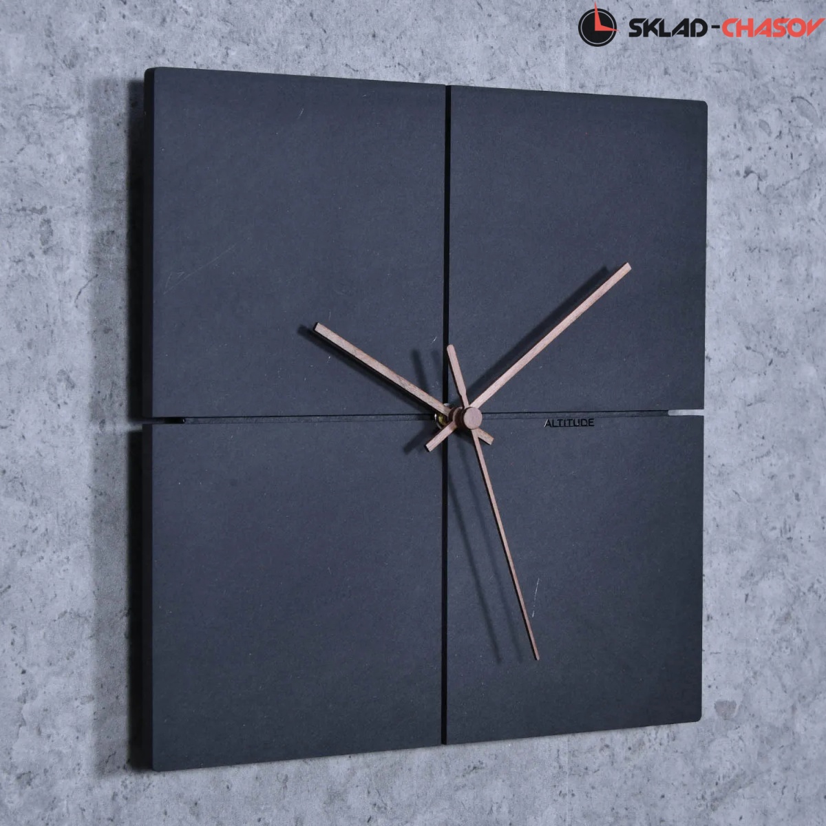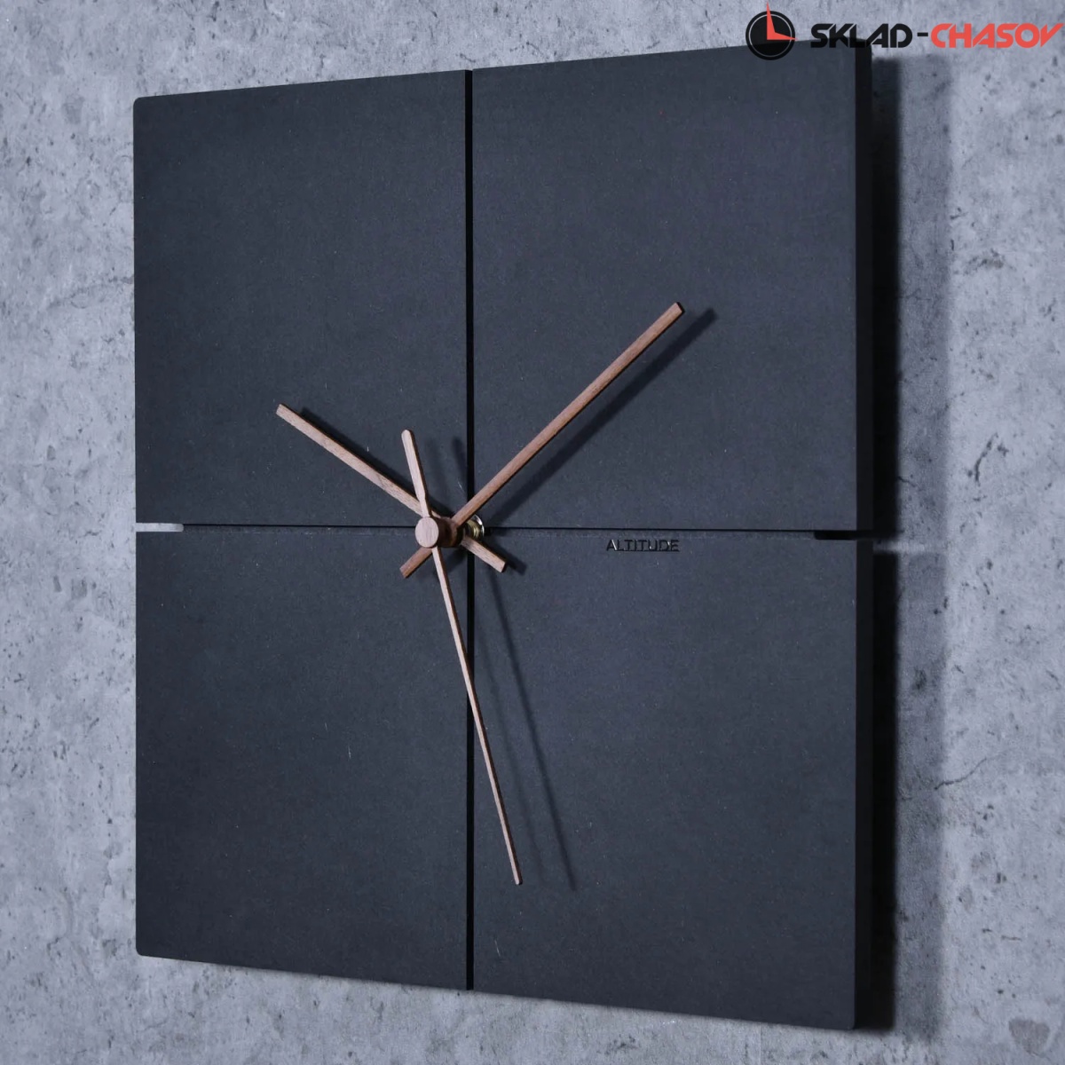 Настенные интерьерные часы от немецкого дизайнера Фридриха Кельна. Необычный дизайн украшает пространство стильного загородного дома или современной роскошной квартиры. «Часы в стиле лофт» - вот идея создания. Изготовлено из мдф серого цвета в форме 4 квадратов, отделяют дизайн стрелок с метками времени, часы с кварцевым механизмом, цифры показывают время.