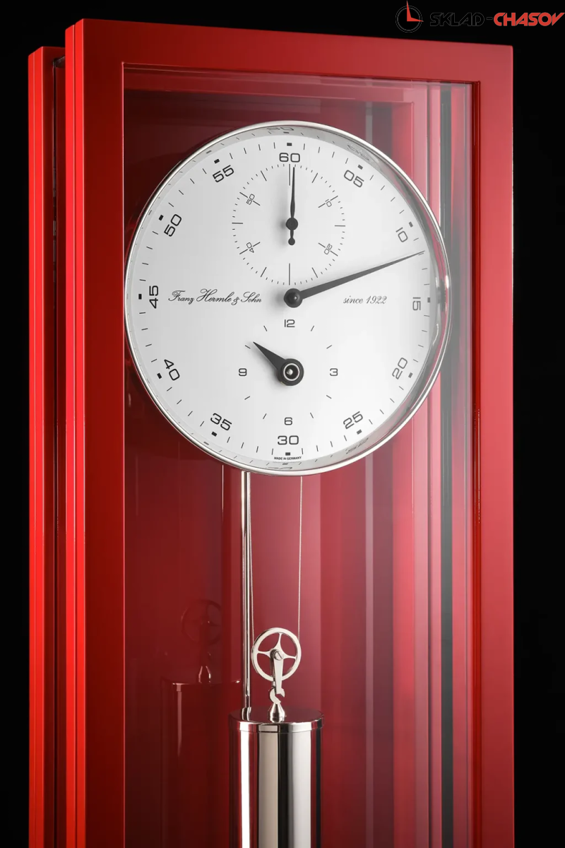 Ультрасовременный механизм для измерения месячных в минималистичном, но очень функциональном дизайне, с оптимальным обзором механизма для измерения месячных Hermle 0761. Особая филигранная конструкция отличается от всех предыдущих корпусов благодаря круглому остеклению из белого стекла. Высококачественное покрытие лаком традиционно обработанного массива дерева подчеркивает высокую ценность часов. Герметичные дверцы с элегантными петлями и магнитными защелками - еще одна деталь высокого качества. Также следует подчеркнуть особый выбор отделки поверхностей, как натуральным деревом, так и модными цветами, подобранными со вкусом. Прецизионный маятниковый механизм с 31-дневным запасом хода. Зубчатая передача установлена на 6 шарикоподшипниках и 6 рубиновых камнях.