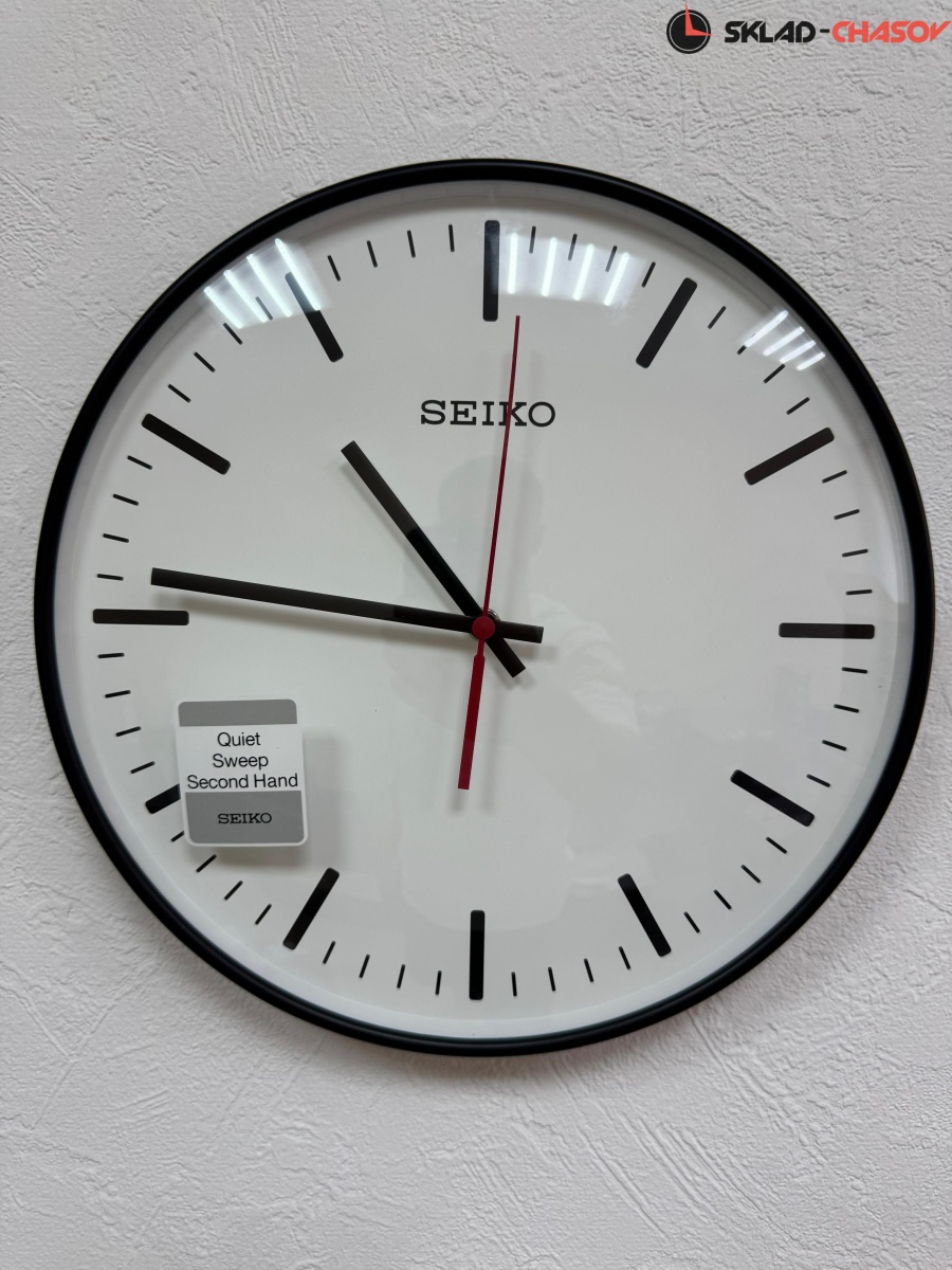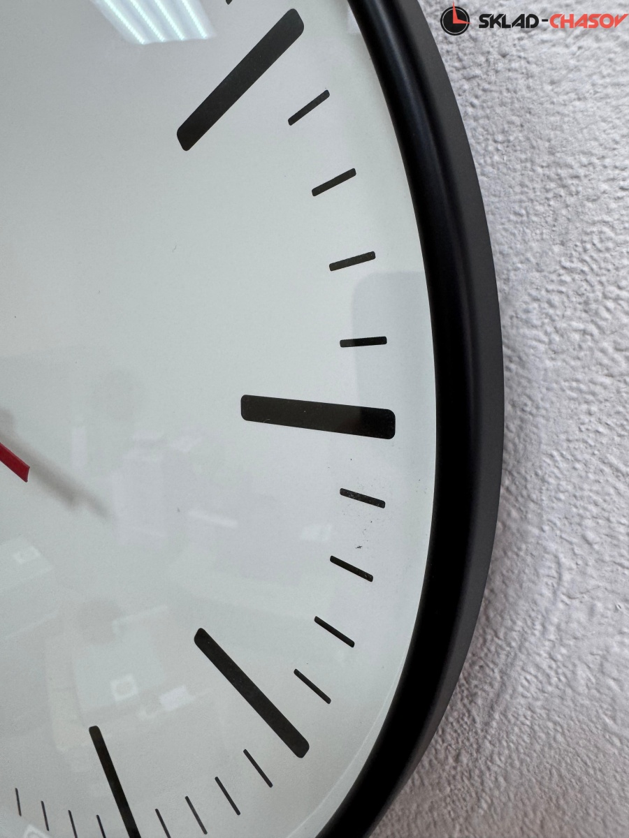 Настенные кварцевые часы с аналоговым циферблатом (стрелки). Стрелки: черная часовая, черная минутная и красная секундная. Плавный ход секундной стрелки. Бесшумный механизм. Корпус выполнен из пластика.
