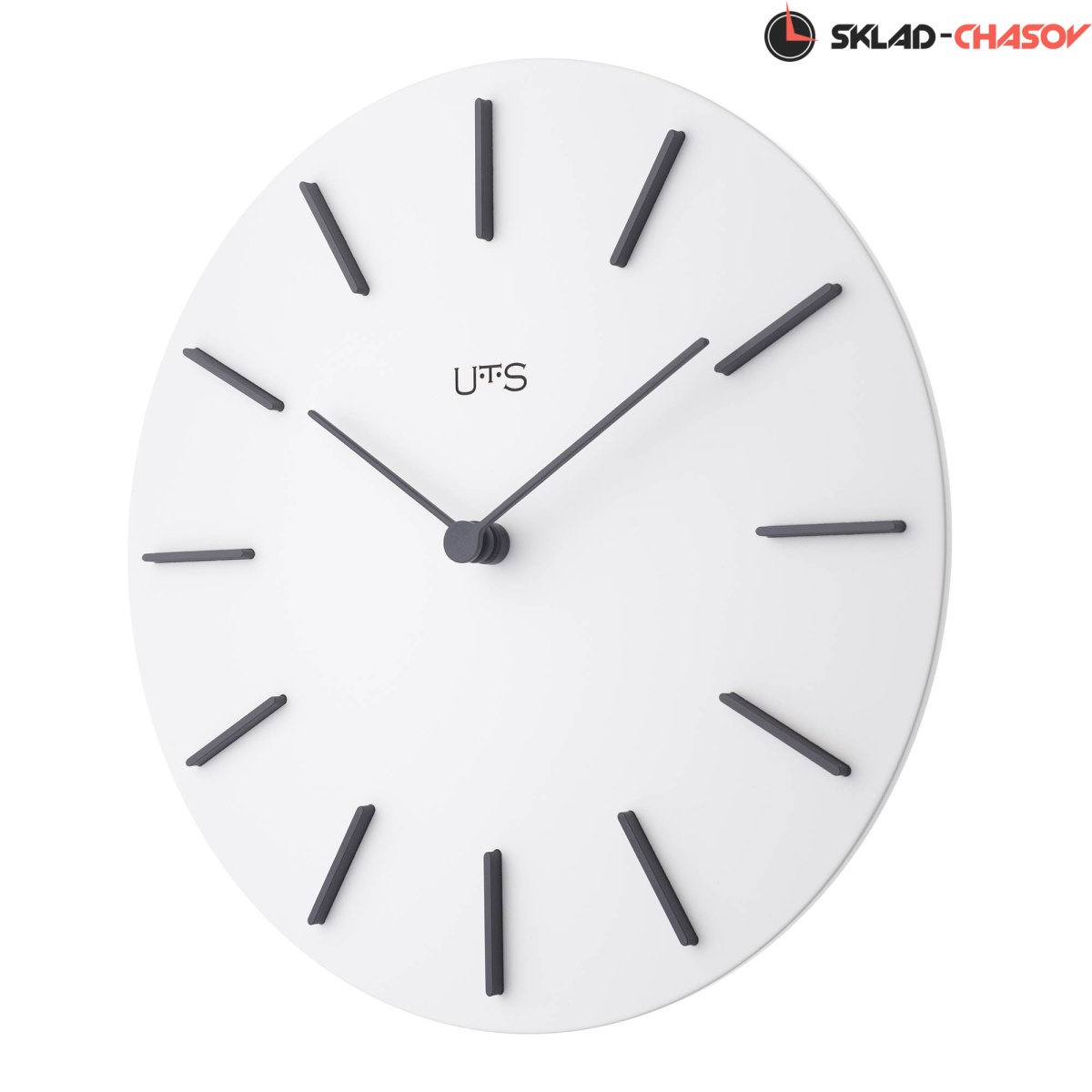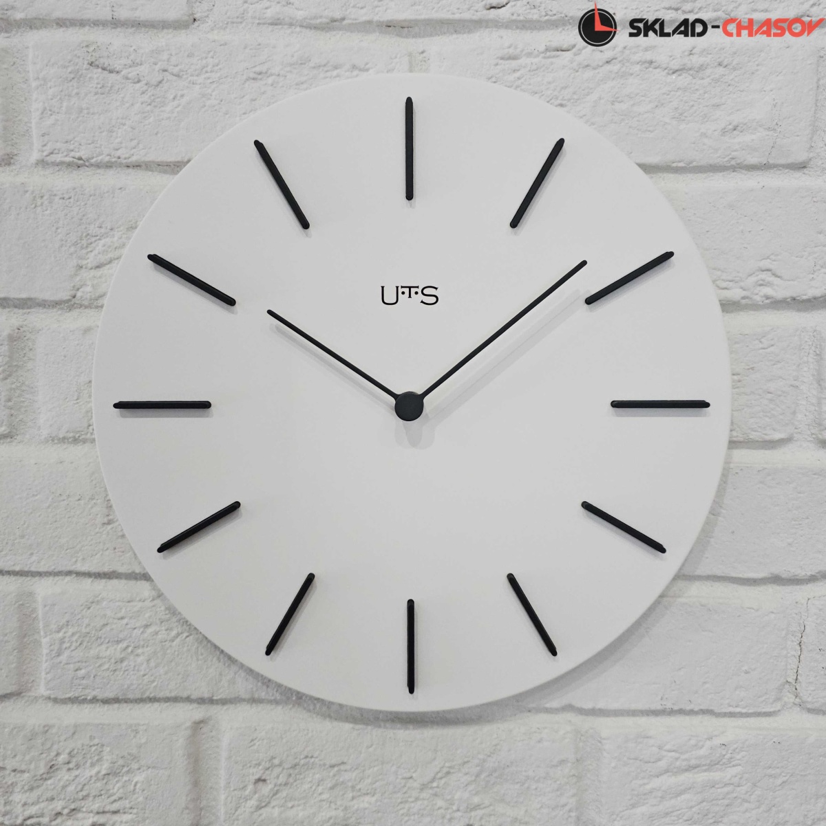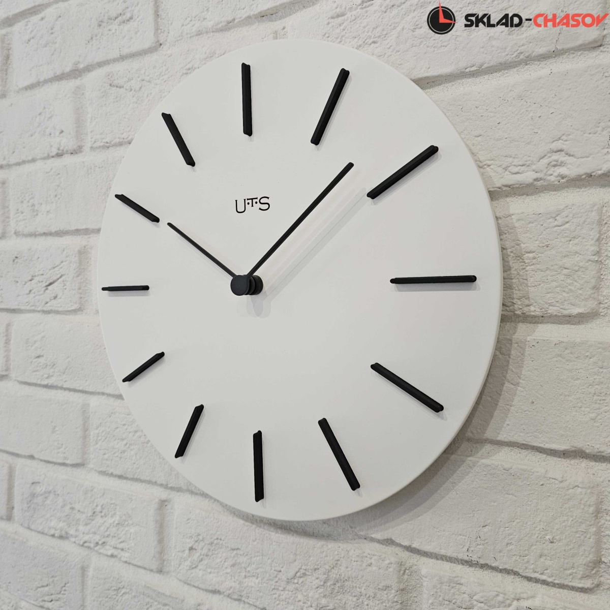 Кварцевые настенные часы с современном стиле. Корпус выполнен из МДФ и тонирован в белый цвет. Объемные часовые индексы сделаны из пластика цвета графит и аккуратно утоплены в специальных ложементах. В часах установлен тихий, точный и надежный механизм Young Town 12888 c дискретным ходом. Необходим 1 элемент питания типа АА (в комплект не входит).