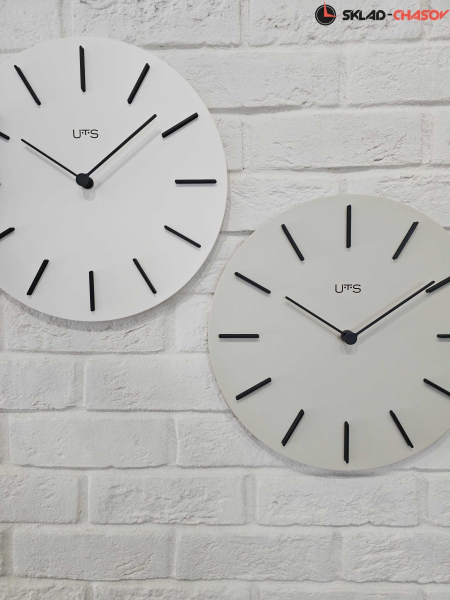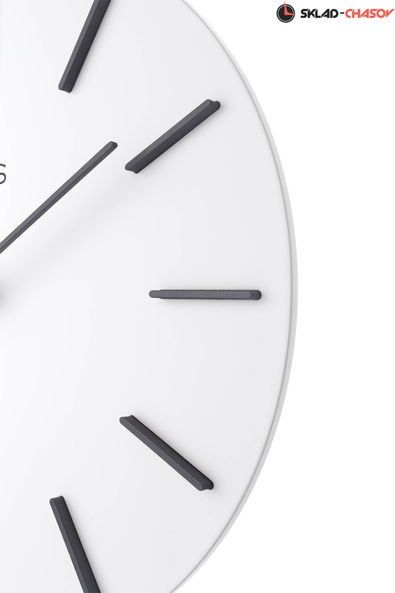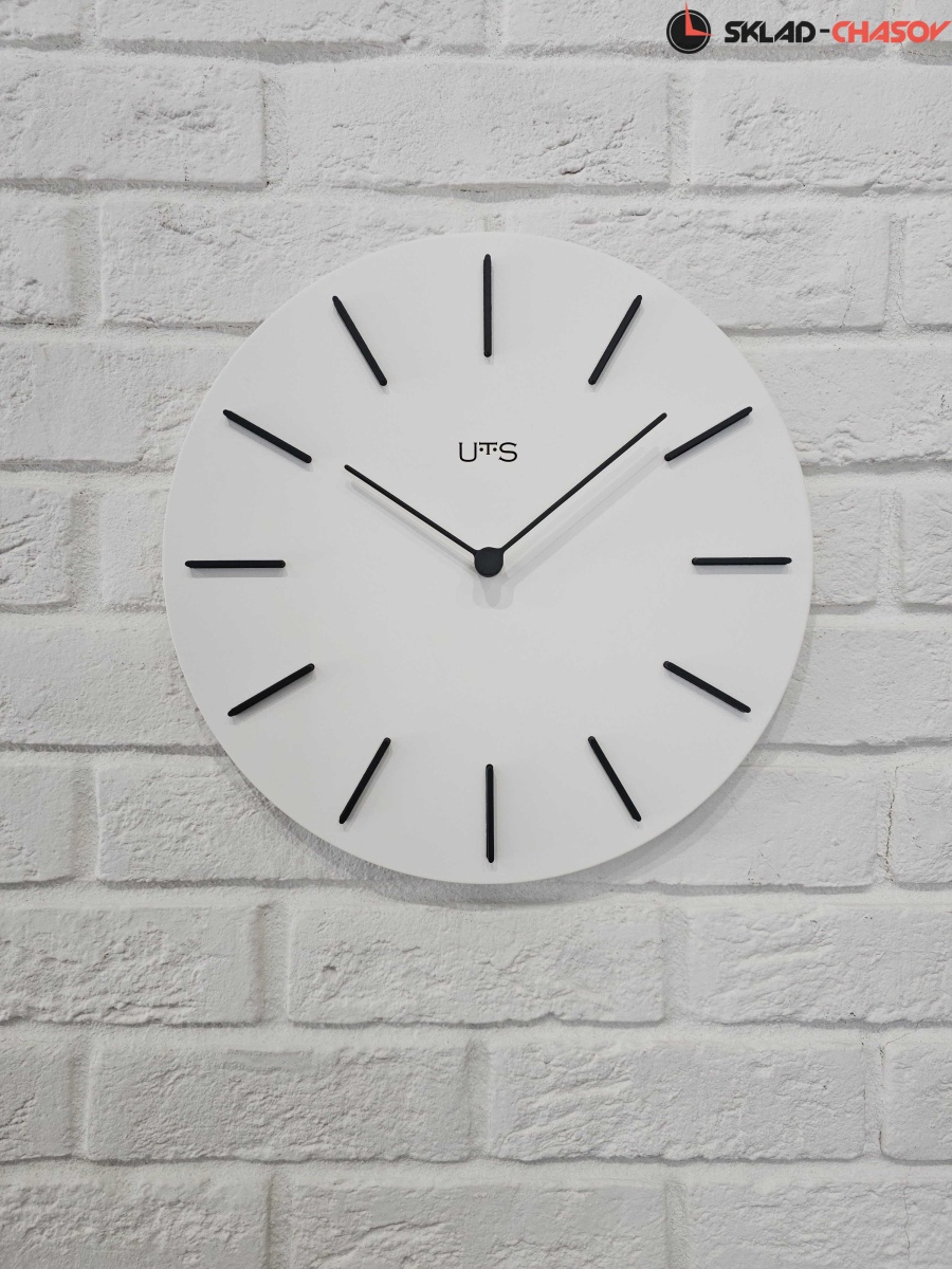 Кварцевые настенные часы с современном стиле. Корпус выполнен из МДФ и тонирован в белый цвет. Объемные часовые индексы сделаны из пластика цвета графит и аккуратно утоплены в специальных ложементах. В часах установлен тихий, точный и надежный механизм Young Town 12888 c дискретным ходом. Необходим 1 элемент питания типа АА (в комплект не входит).