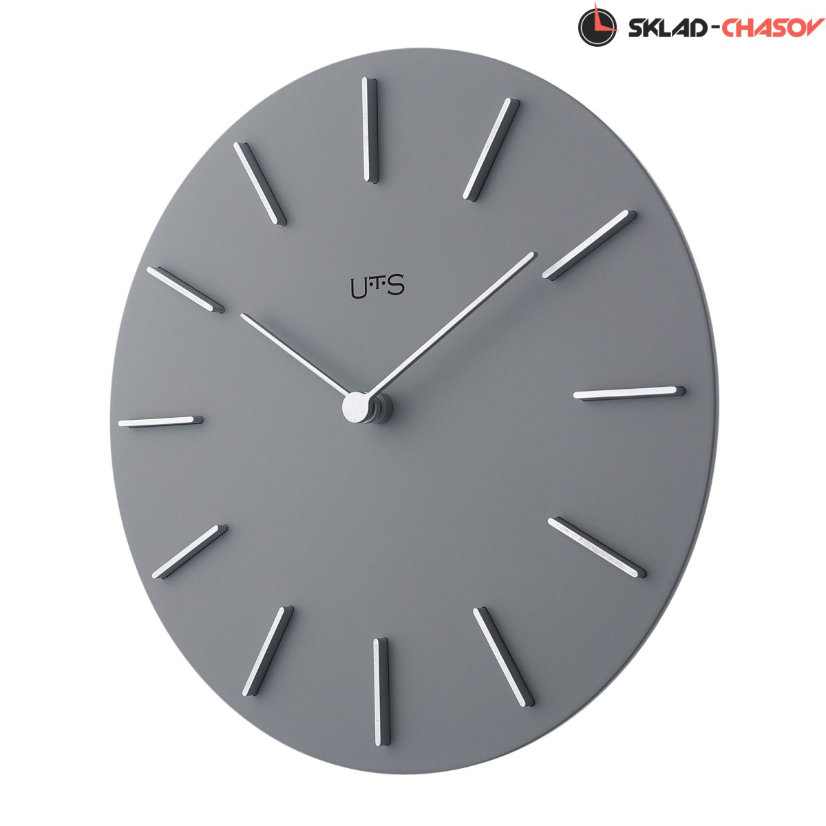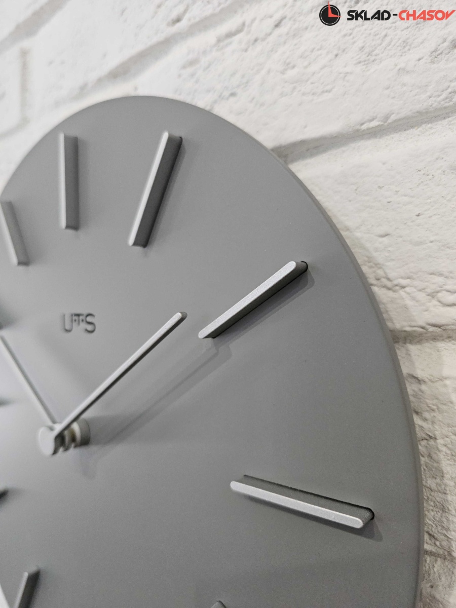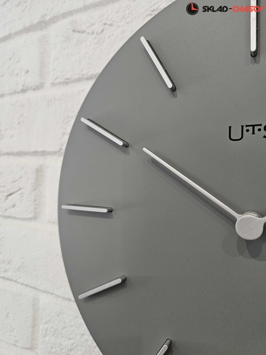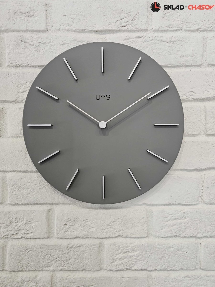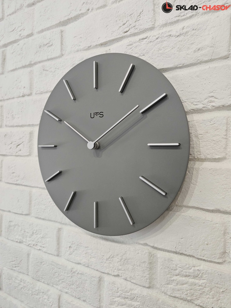 Кварцевые настенные часы с современном стиле. Корпус выполнен из МДФ и тонирован в сером цвете. Объемные часовые индексы сделаны из пластика серебряного цвета и аккуратно утоплены в специальных ложементах. В часах установлен тихий, точный и надежный механизм Young Town 12888 c дискретным ходом. Необходим 1 элемент питания типа АА (в комплект не входит).