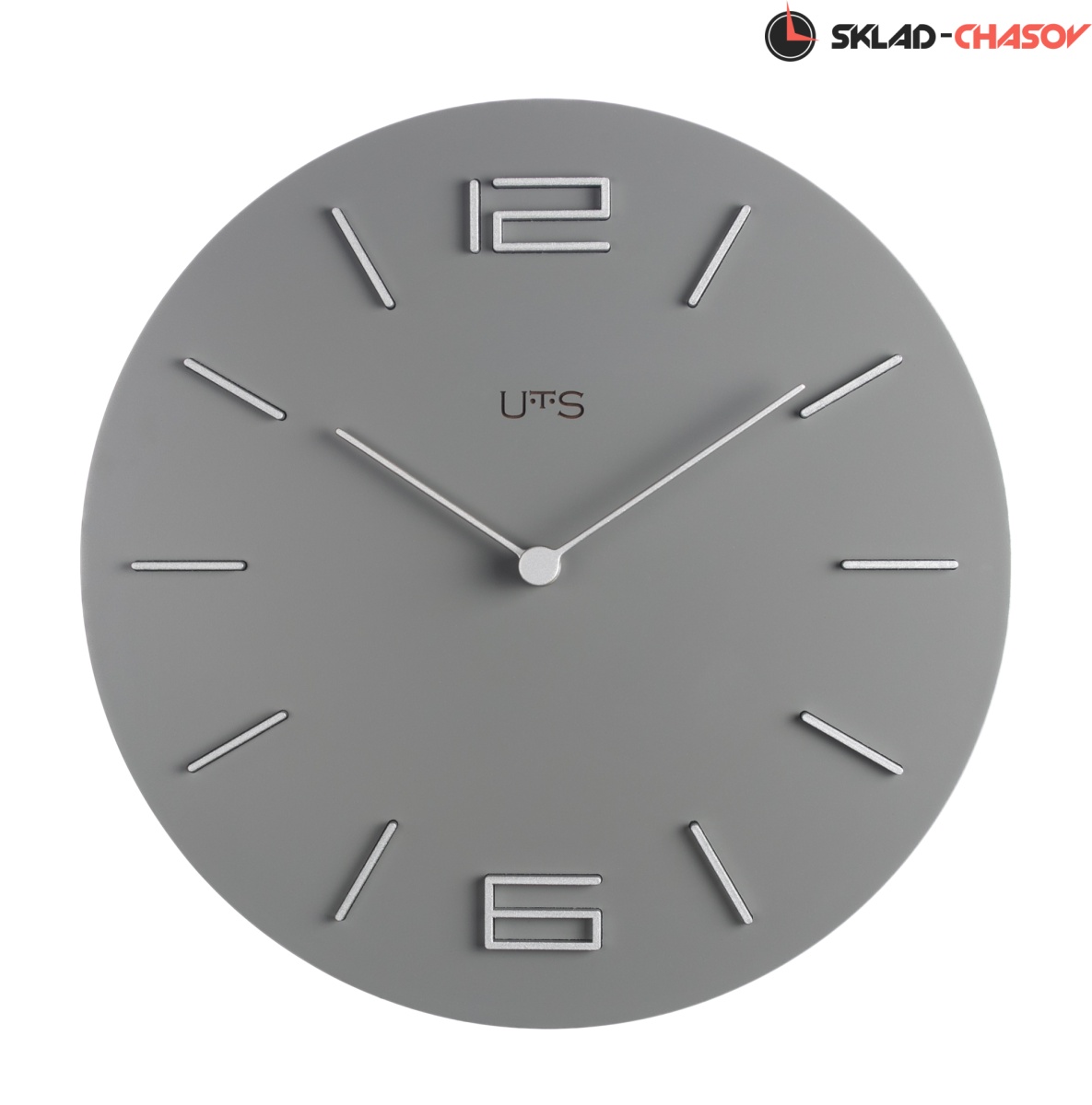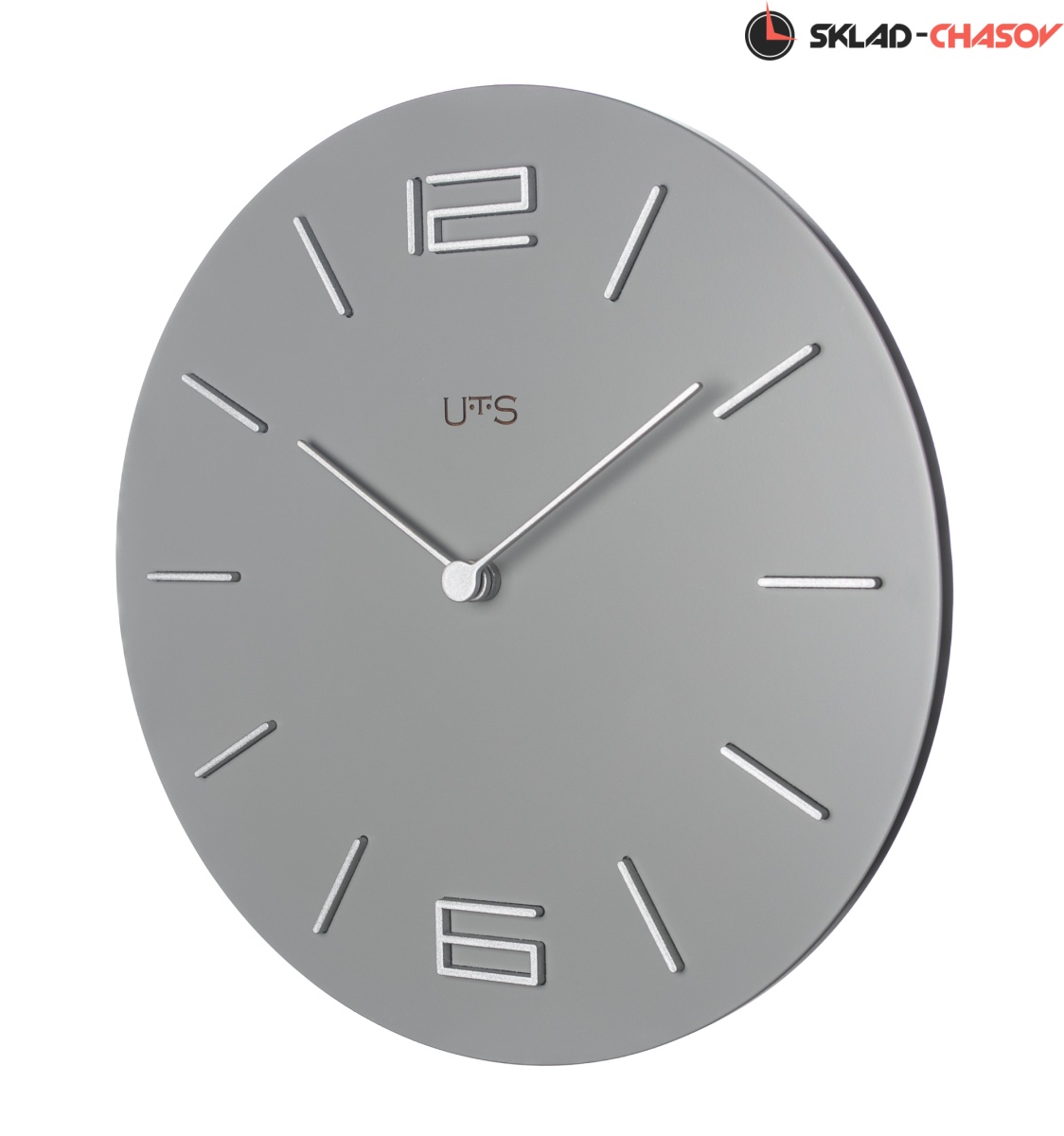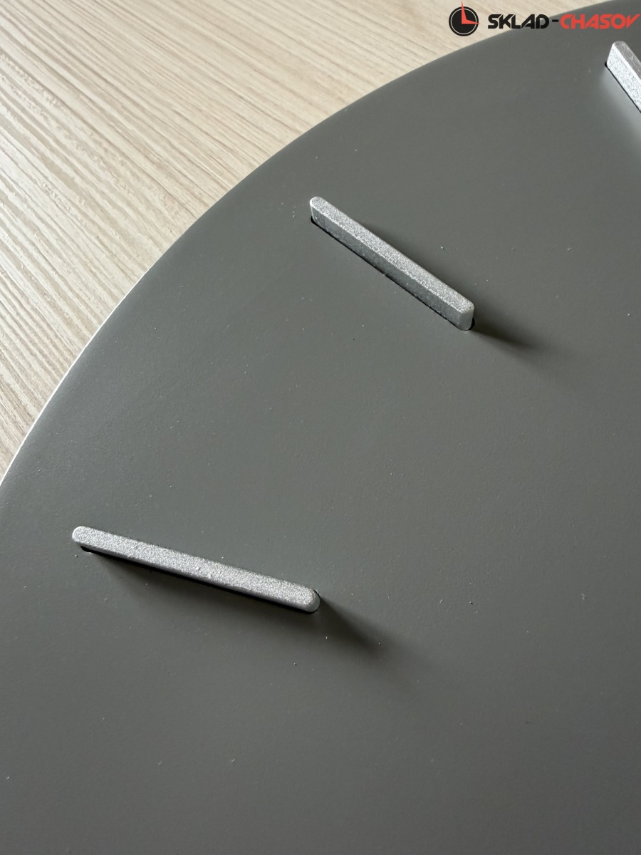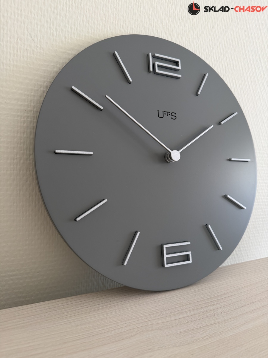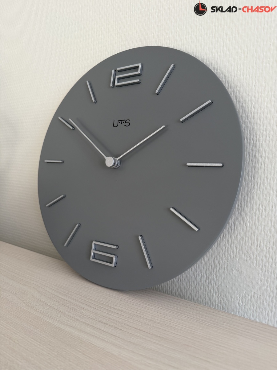 Кварцевые настенные часы с современном стиле. Корпус выполнен из МДФ и тонирован в сером цвете. Объемные часовые индексы и арабские цифры - из пластика серебряного цвета и аккуратно утоплены в специальных ложементах. В часах установлен тихий, точный и надежный механизм Young Town 12888 c дискретным ходом. Необходим 1 элемент питания типа АА (в комплект не входит).