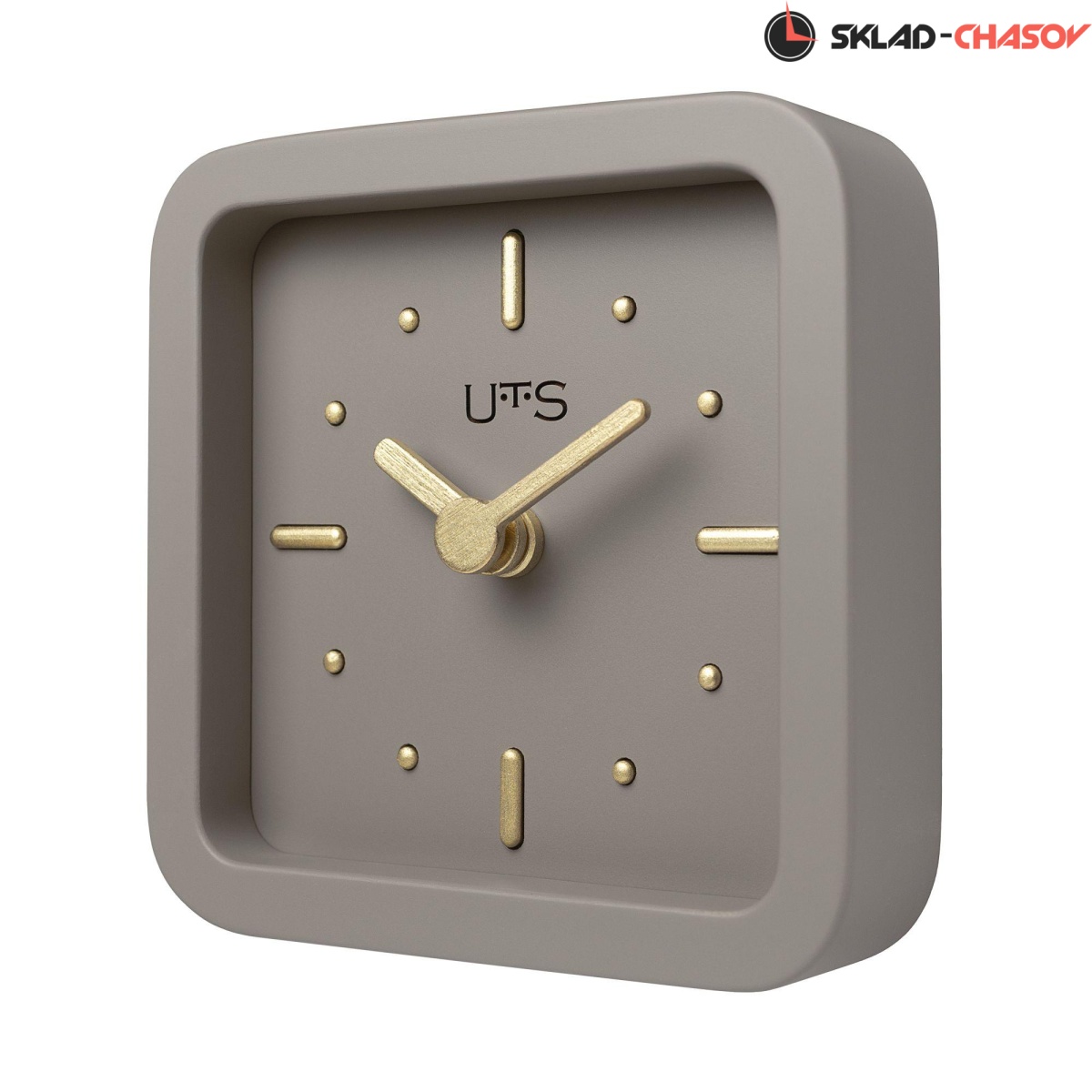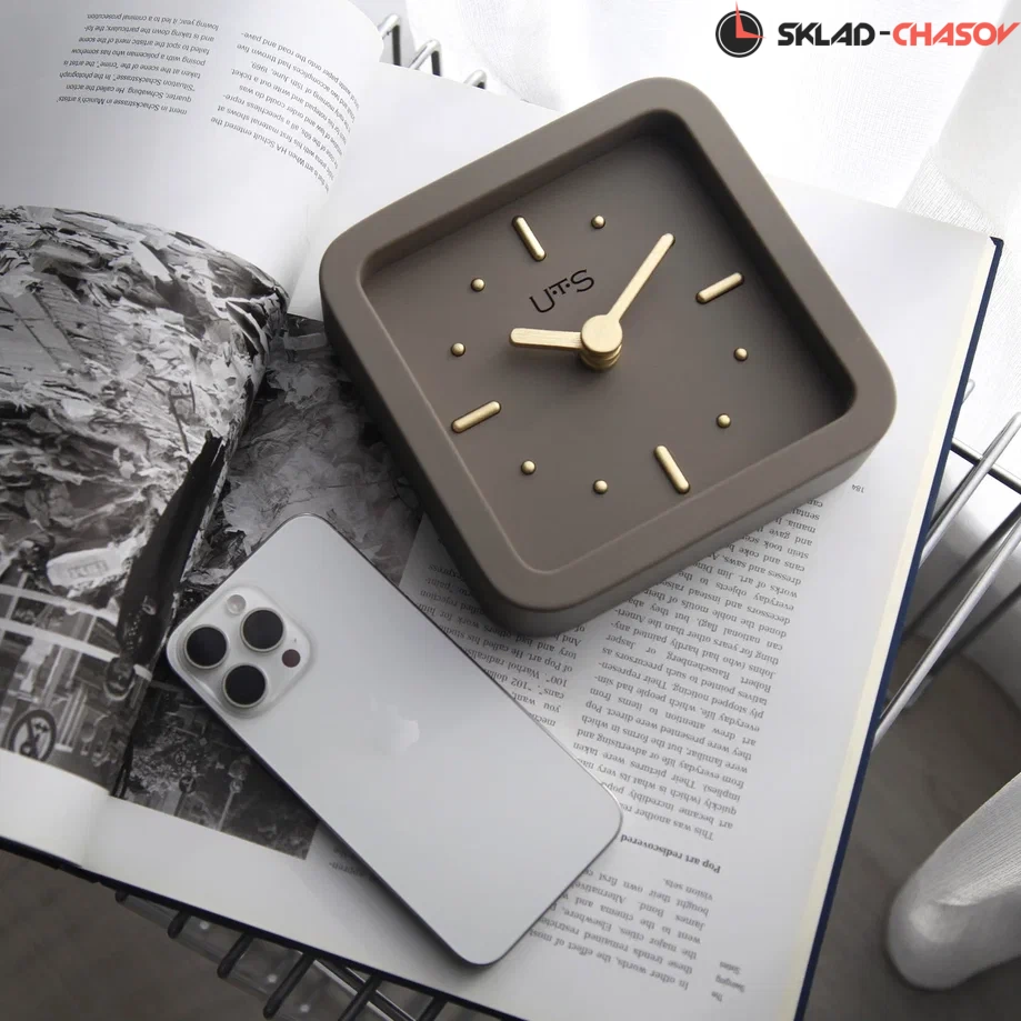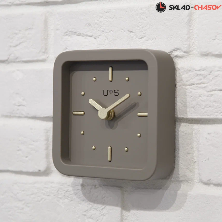 Кварцевые настенно-настольные часы с современном стиле. Корпус выполнен из МДФ и тонирован в бежево-сером цвете. Объемные часовые индексы сделаны из дерева, тонированы в золотой цвет и аккуратно утоплены в специальных ложементах. В часах установлен тихий, точный и надежный механизм Young Town 12888 c плавным ходом. Необходим 1 элемент питания типа АА (в комплект не входит).