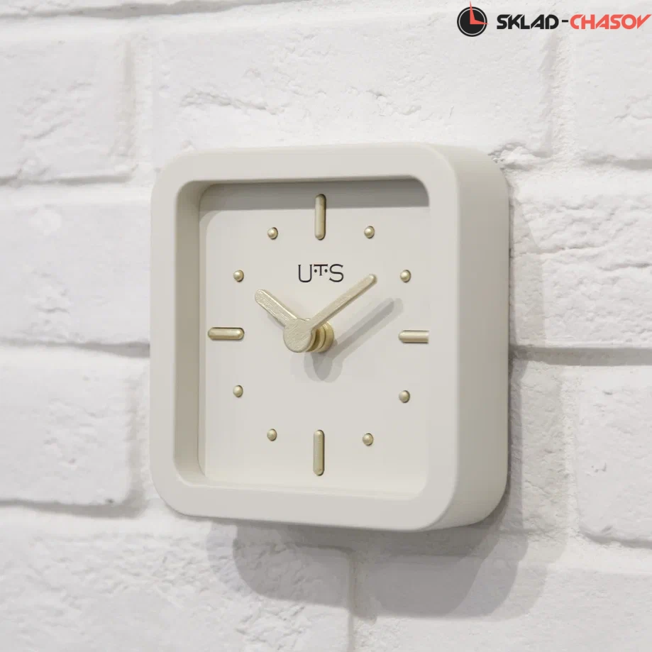 Кварцевые настенно-настольные часы с современном стиле. Корпус выполнен из МДФ и тонирован в молочный цвет. Объемные часовые индексы сделаны из дерева, тонированы в золотой цвет и аккуратно утоплены в специальных ложементах. В часах установлен тихий, точный и надежный механизм Young Town 12888 c плавным ходом. Необходим 1 элемент питания типа АА (в комплект не входит).