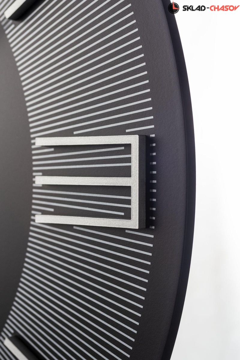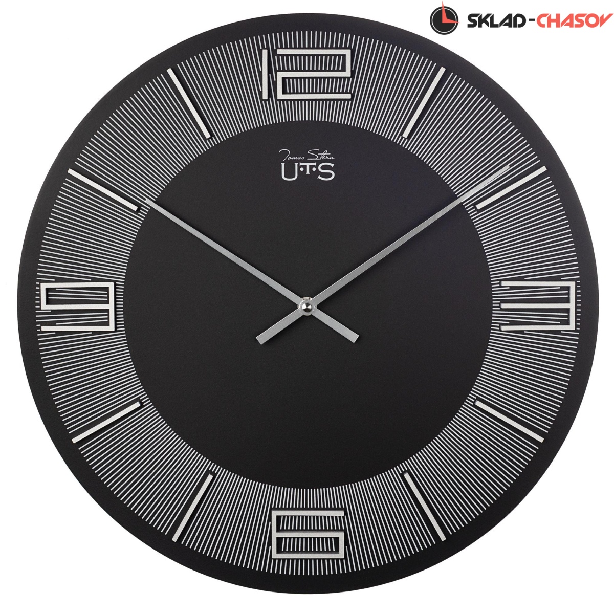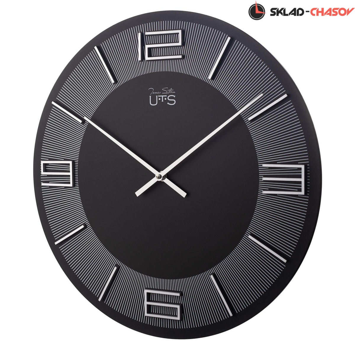Кварцевые настенные часы. Корпус выполнен из МДФ и тонирован в черный цвет. Объёмные арабские цифры и часовые метки выполнены из пластика, стилизованного под металл. Строгий и лаконичный вид модели дополняют аккуратные металлические полированные стрелки серебряного цвета. В часах установлен тихий, точный и надежный механизм Hermle W2100 (Германия) c дискретным ходом. Необходим 1 элемент питания типа АА (в комплект не входит).