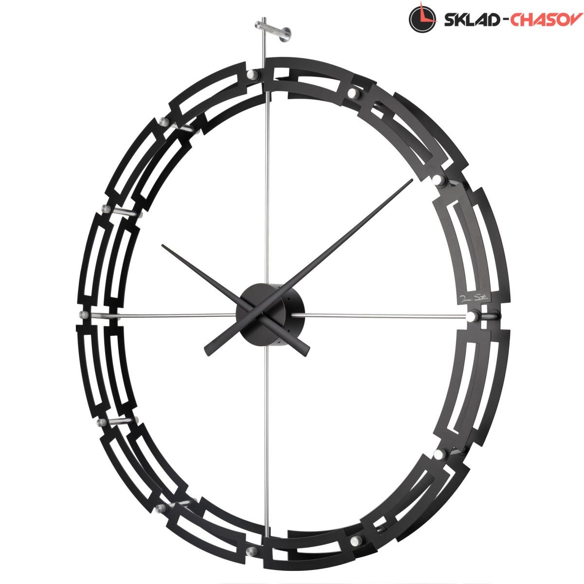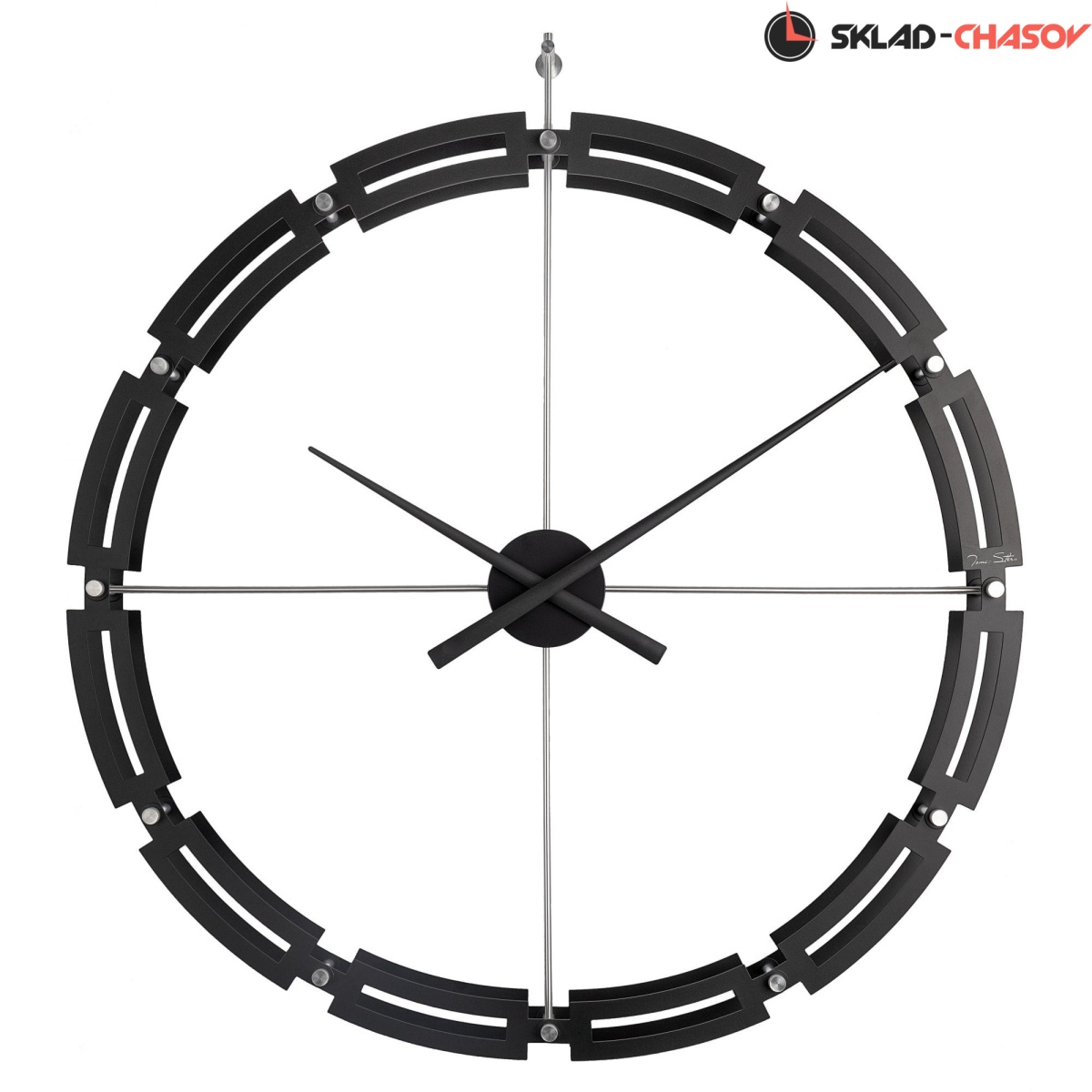 Кварцевые настенные часы большого диаметра в современном стиле, на подвесе. Корпус часов выполнен из металла и покрыт черной матовой краской. В часах установлен тихий, точный и надежный механизм Young Town 12888 c дискретным ходом. Необходим 1 элемент питания типа АА (в комплект не входит).