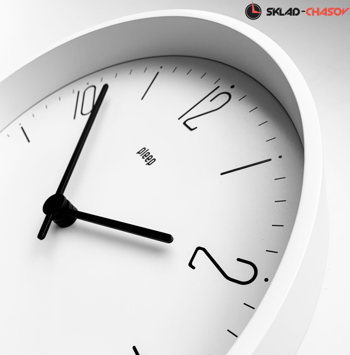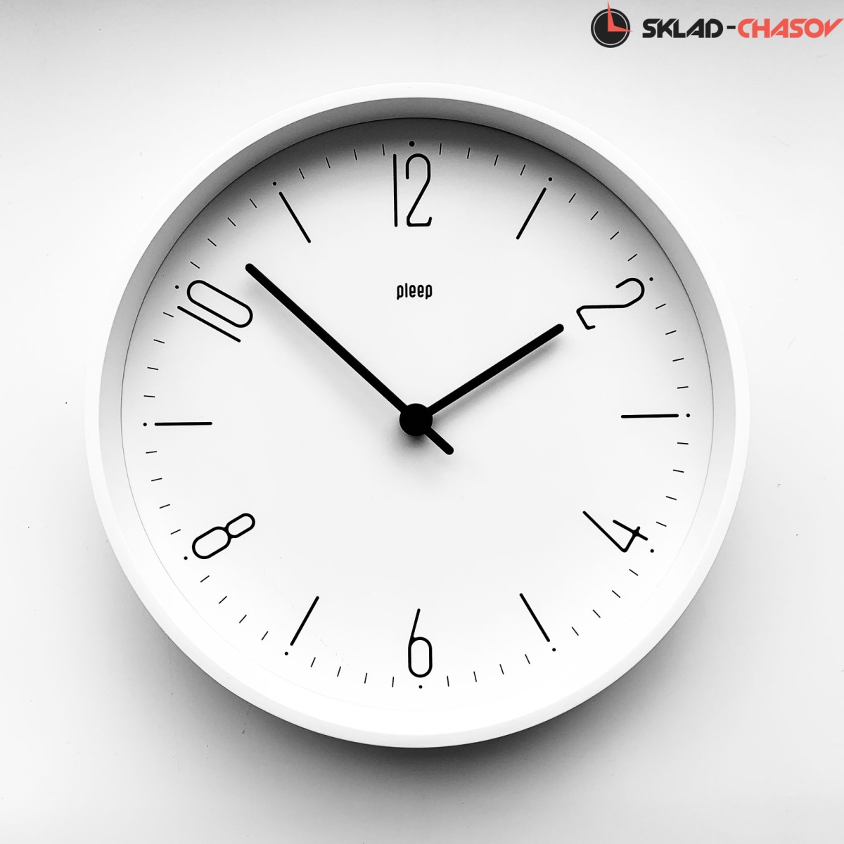 Белый обод, белый циферблат с черными цифрами.