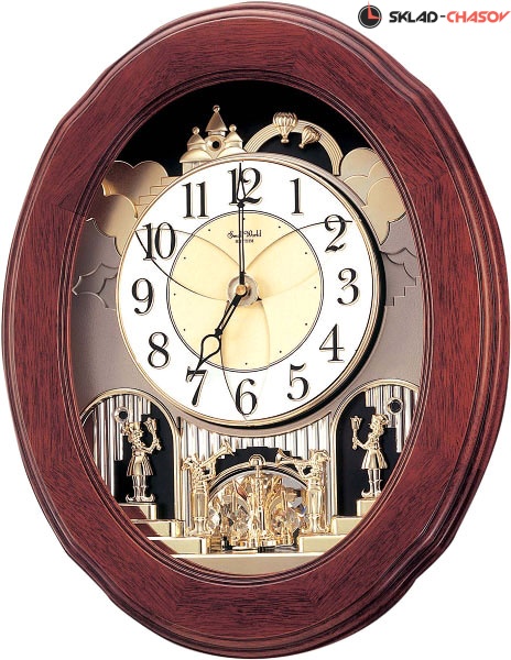 Ностальгия. Эти часы удивят Вас каждый час! Золотой циферблат открывается на три секции и в это время играет одна из шести известных CTS мелодий или четырех рождественских. Красивая деревянная рамка, золотые и серебряные акценты делают эти часы изящным дополнением в Вашем доме. Функция демонстрации. Почасовая мелодия. Атоматический глушитель мелодии в ночное время суток с сенсорным датчиком. Вращение маятника (Swarovski кристаллическое художественное оформление). Световое оформление во время проигрывания. Регулятор звука. Выключатель движения циферблата и музыкального сопровождения. 6 мелодий CTS. +4 рождественских мелодий. Батареи Dx2 (входят в комплект). Габариты 41,5х52,4х11,6см. Вес 4,35кг. Материал - натуральное дерево. 4MH811WD06 отличаются от модели 4MH780WD06 только отделкой дерева на рамке, в 4MH811WD06 она лакированная.