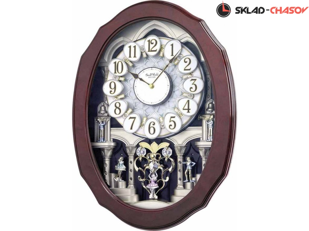 Корпус часов украшен декорациями к балету "Лебединое озеро" с фигурками принца и принцессы. Когда каждый час, под световое сопровождение, звучит одна из 18 мелодий, циферблат часов превращается в завораживающее зрелище танца цифр и лебедей. Почасовая мелодия. Режим демонстрации. Автоматический глушитель мелодии в ночное время суток с сенсорным датчиком. Swarovski кристаллическое художественное оформление.Выключатель движения циферблата и музыкального сопровождения. Регулятор звука. 6 фолькл.+6 классических +6 рождественских мелодии. Батареи Dх4 (входят в комплект). Габариты 42х57х11см. Вес 5 кг. Материал: натуральное дерево.