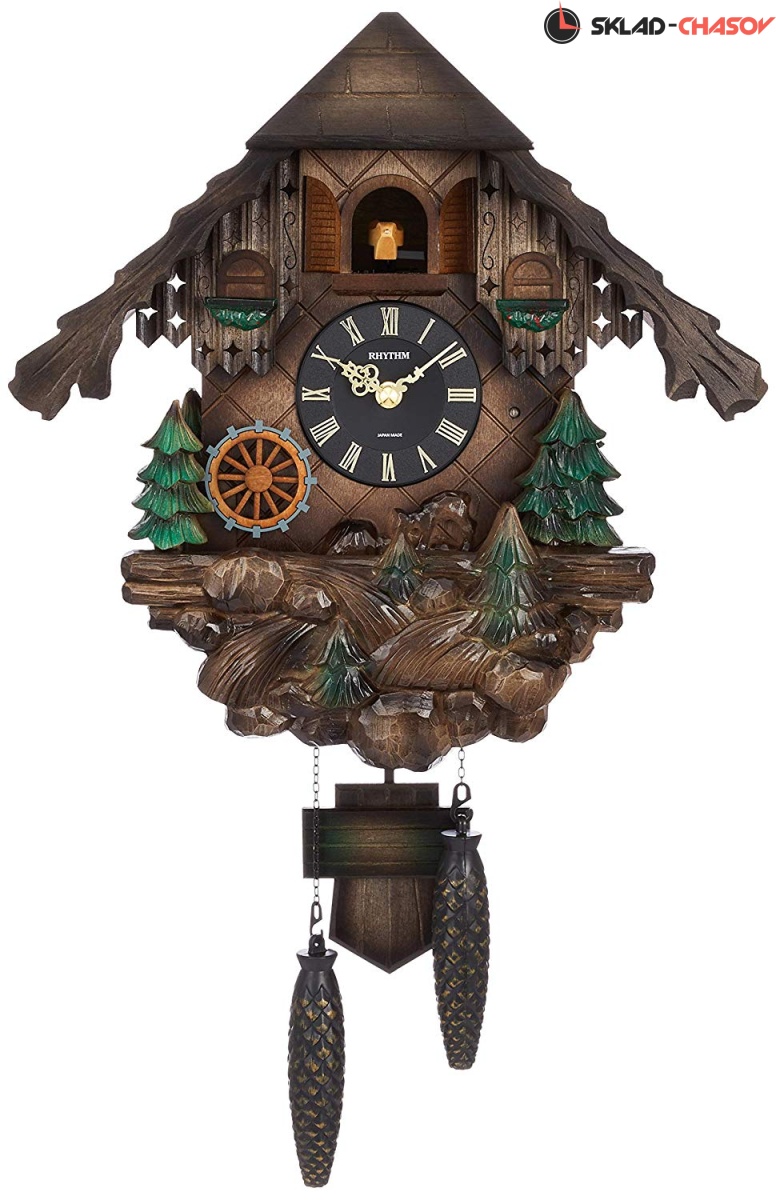 Часы настенные кварц. с маятником и кукушкой.Колесо мельницы вращается под мелодию после кукования кукушки, Автоматическое отключение на ночь при помощи датчика, механическое чириканье птиц каждый час, одна кукушка.Ручной перевод стрелок. Имитация механического движения гири. Цвет - комбинированный,темно-коричневый , материал - натуральное дерево. Элемент питания Сх1шт. (входят в комплект).