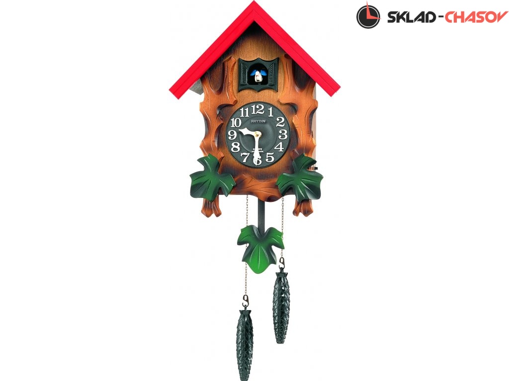 Часы настенные кварц. с маятником и кукушкой. Имитация механического движения гири.Звуковой сигнал каждые 30 минут. Цвет - комбинированный коричневый, зеленый, красный. Материал - натуральное дерево. Элемент питания Dх1шт. (входят в комплект).