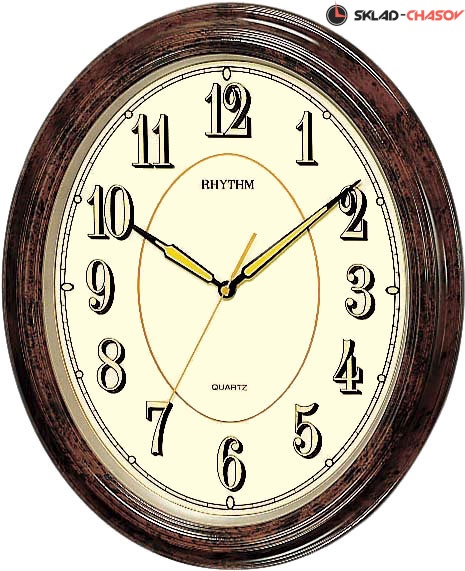 Часы настенные. Супер люминисцентные. Цвет - коричневый под натуральное дерево. Вес 0,9кг. Материал - пластик. Элемент питания ААх1 (входит в комплект).