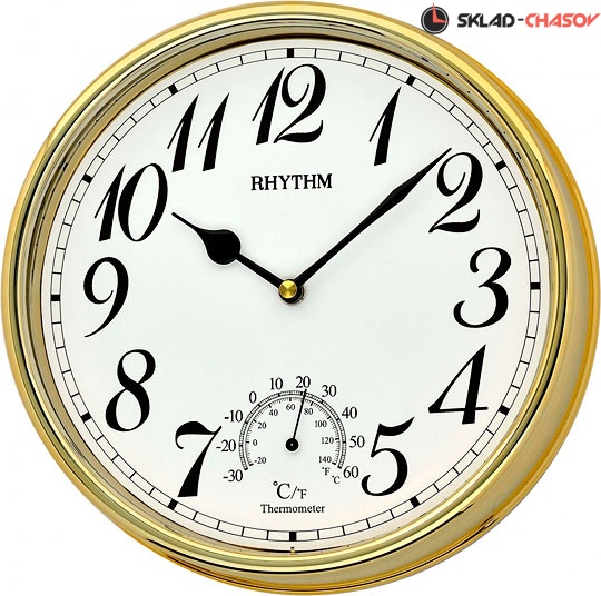 Часы настенные , с термометром. Цвет - золото . Материал - пластик. Элемент питания - ААх1 (входит в комплект).