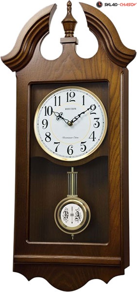 Часы настенные музыкальные с маятником. Ночное автовыключение с 23:00 до 05:45 часов. Четыре режима музыкального сопровождения на выбор: 1. Каждые четверть часа звучит Вестминстерская мелодия и перезвон. 2. Каждый час звучит Вестминстерская мелодия и перезвон. 3. Каждый час звучит одна из 16 классических мелодий. 4. Каждый час звучит одна из 3 рождественских мелодий. Регулятор громкости. Режим демонстрации музыкального сопровождения. Размер 32 x 68 x 12см. Вес - 3.44кг. 2 Цвет корпуса - коричневый. Материал - дерево. Элемент питания - Сх2шт.(входят в комплект)