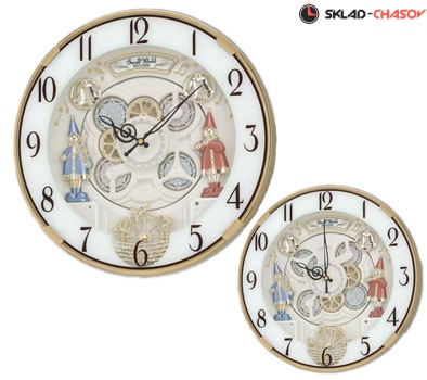 Настенные часы с мелодией и движением. 6 народных мелодий, 6 классических мелодий и 6 рождественских. Регулировка громкости. Функция автоматического выключения звука, работающая на световом датчике.
