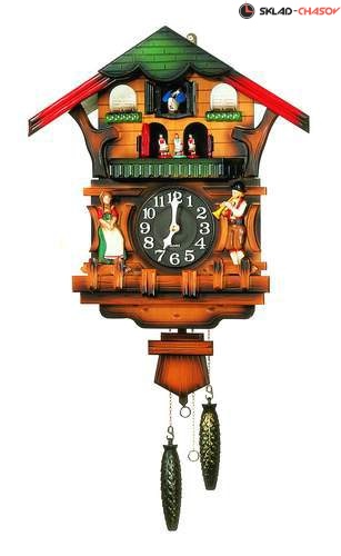 Деревянные настенные часы-ходики с кукушкой с яркими и красочными фигурками людей, отлично впишутся на кухню