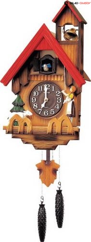 Одна механическая птичка за дверцей, "живой" звук кукушки - используются воздушные меха. Колокольчик в башенке - звонит одновременно с кукушкой. Маятник. Ручной перевод стрелок.