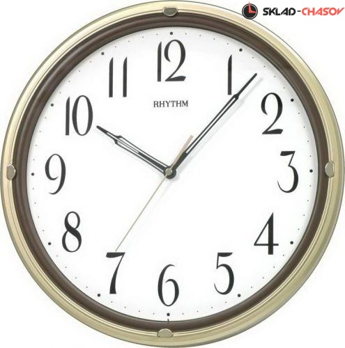 Контрастные арабские цифры. Японский кварцевым механизм RHYTHM с бесшумным, плавным ходом секундной стрелки. Высокая экономичность - потребляемый ток при напряжении 1,4 В: 115мkА. Материал корпуса пластик/золото. Батарейка в комплекте.