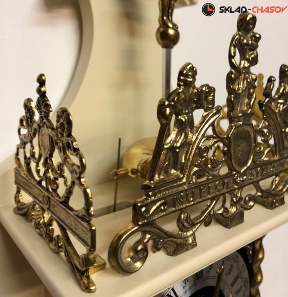 Часы настенные механические SARS 5602-261 Ivory (слоновая кость) c боем имеют надежный немецкий механизм Hermle. Корпус часов изготовлен в Европе (Испания). Сверху расположена бронзовая корона с надписью, которая переводится как «Каждый достоин того, о чем мечтает». Над колоколом, по которому отбиваются часы - фигура атланта, держащего над головой небесный свод.
