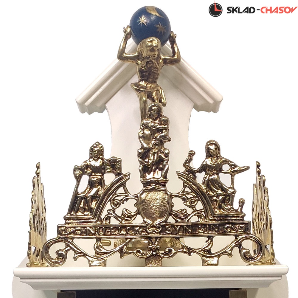 Корпус часов изготовлен в Европе (Испания). Сверху расположена бронзовая корона с надписью, которая переводится как «Каждый достоин того, о чем мечтает». Над колоколом, по которому отбиваются часы - фигура атланта, держащего над головой небесный свод.