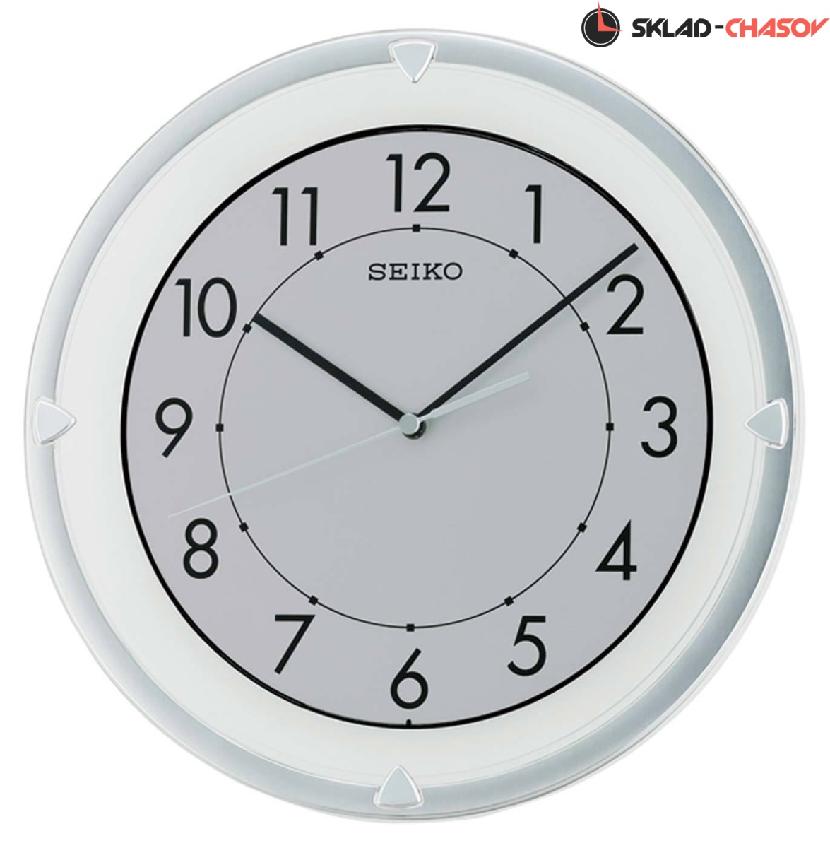 Настенные кварцевые часы. С плавным ходом секундной стрелки. Материал - пластик. Цвет серебристый.