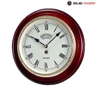 Кварцевые настенные часы. Полированный деревянный корпус. Диаметр корпуса 28.2 см, толщина 4.4 см.