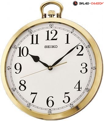 Оригинальные настенные часы популярной марки SEIKO. Золотистый пластиковый корпус в виде большого будильника, крупные арабские цифры несомненно порадуют своего владельца стильностью и функциональностью. Кварцевый механизм плавного (бесшумного) хода гарантирует точную и надежную работу часов долгие годы. Часы работают от одной кварцевой батарейки АА (в комплекте).