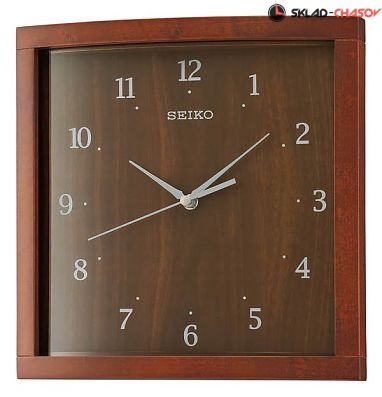 Кварцевые часы. Часы, минуты, секунды. Плавный ход секундной стрелки. Деревянный корпус. Размеры корпуса 26.5 см х 26.5 см, толщина 4.5 см.