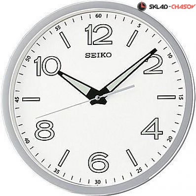 Кварцевые настенные часы. Пластиковый корпус. Плавный ход секундной стрелки, люминесцентная подсветка. Цвет серый (хромированный).