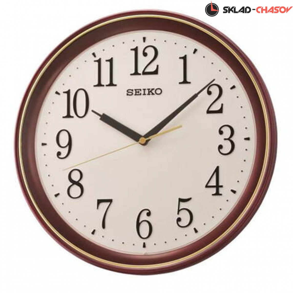 Кварцевые настенные часы,корпус сделан из пластика, цвет корпуса- коричневый металлик, плавный ход секундной стрелки, размер Ø 34x 4,5 см, батарейки: 1 шт. АА в комплекте