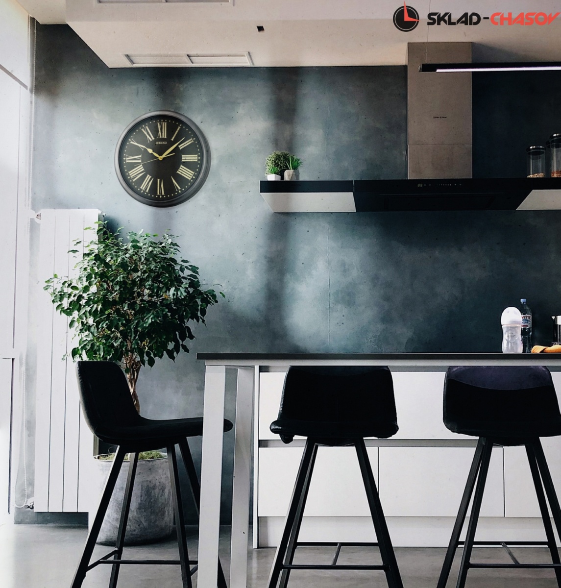 Кварцевые настенные часы,корпус сделан из пластика , цвет - черный, защита от брызг, размер 216; 40,6 x 6,5 см, батарейки: 1 шт. АА в комплекте