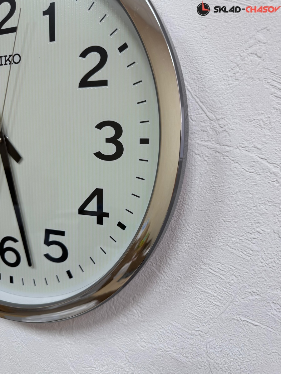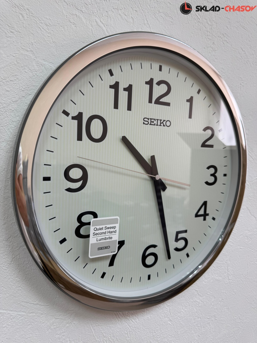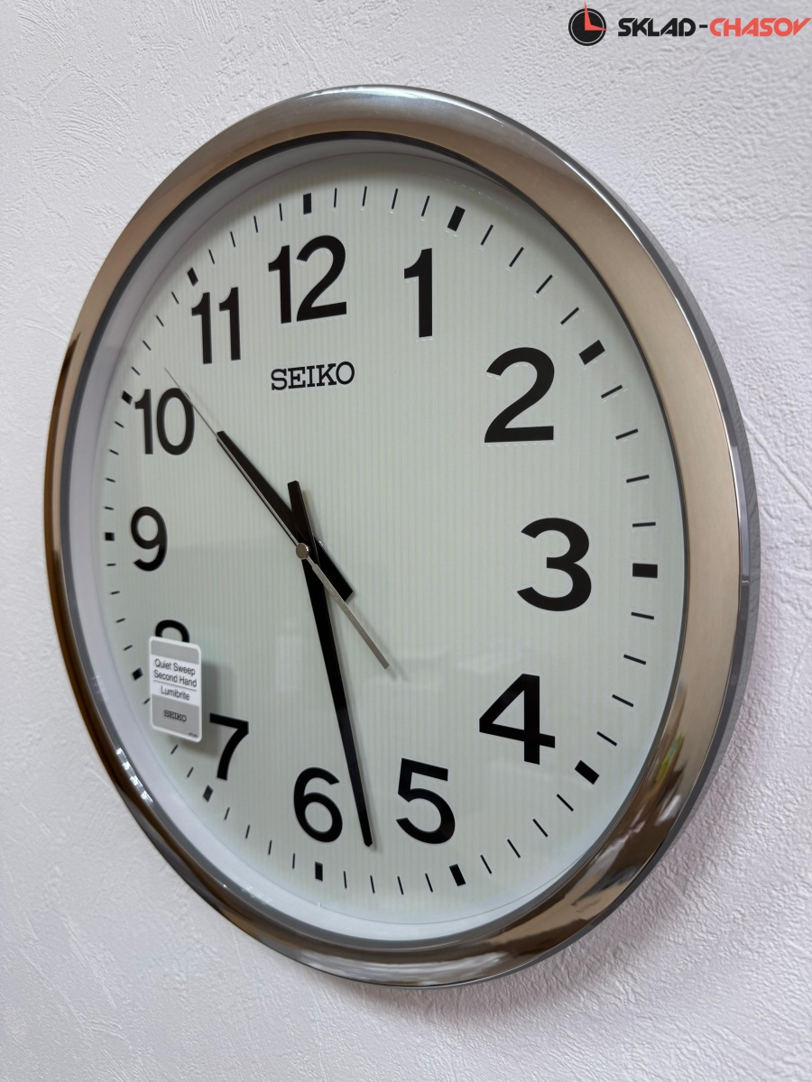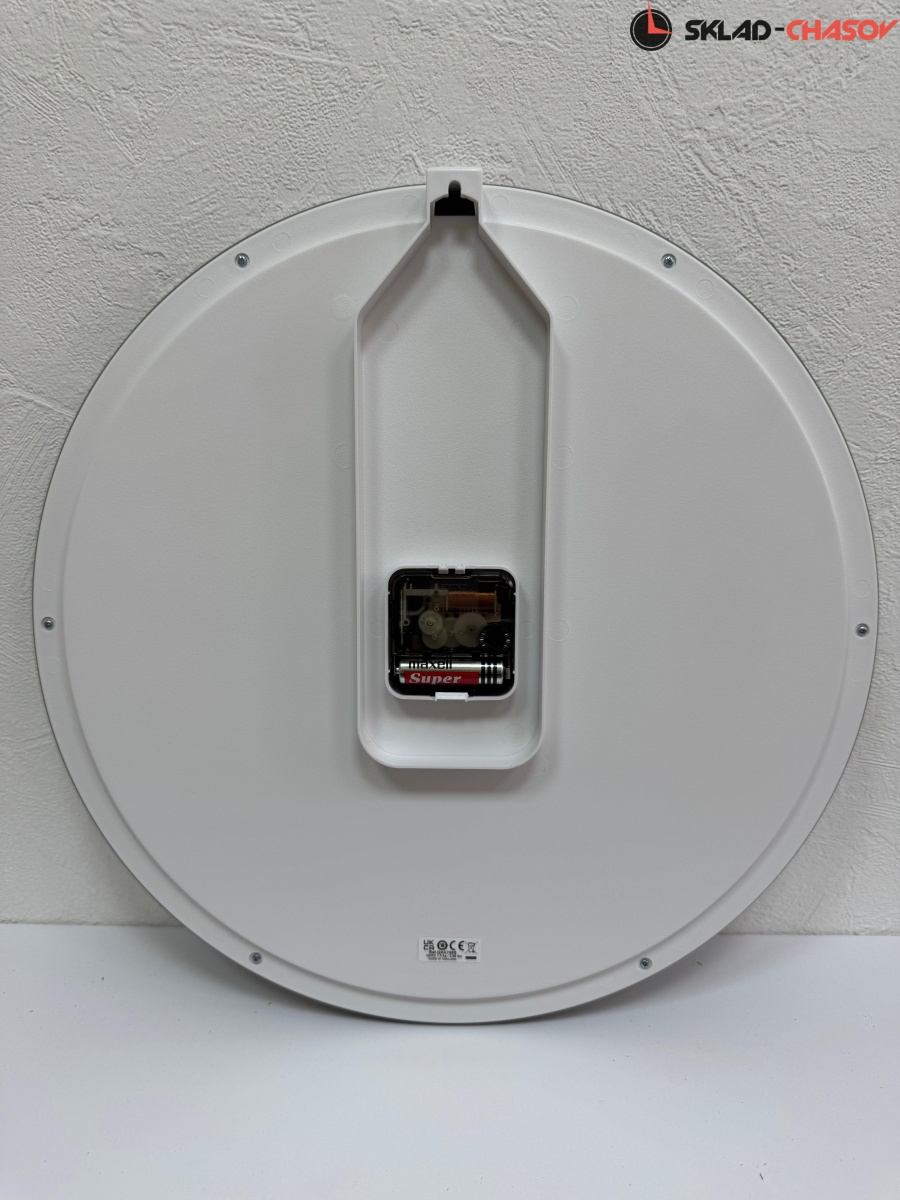 Серебристые настенные кварцевые часы с аналоговым циферблатом (стрелки). Стрелки: черная часовая, черная минутная и серебристая секундная. Белый циферблат с черными арабскими цифрами оснащен люминесцентной подсветкой LumiBrite, что позволит видеть время в темное время суток. Плавный ход секундной стрелки. Бесшумный механизм. Корпус выполнен из пластика.