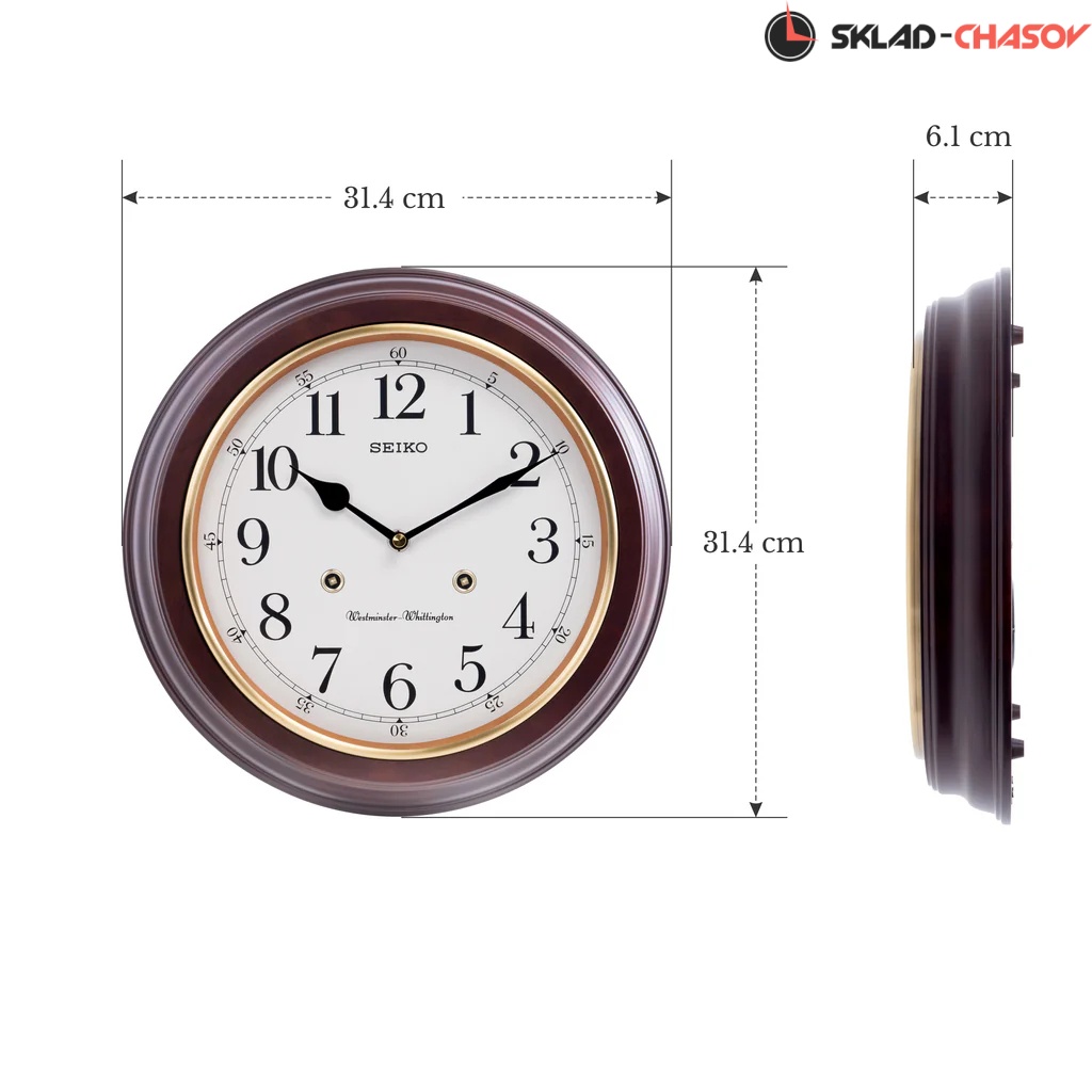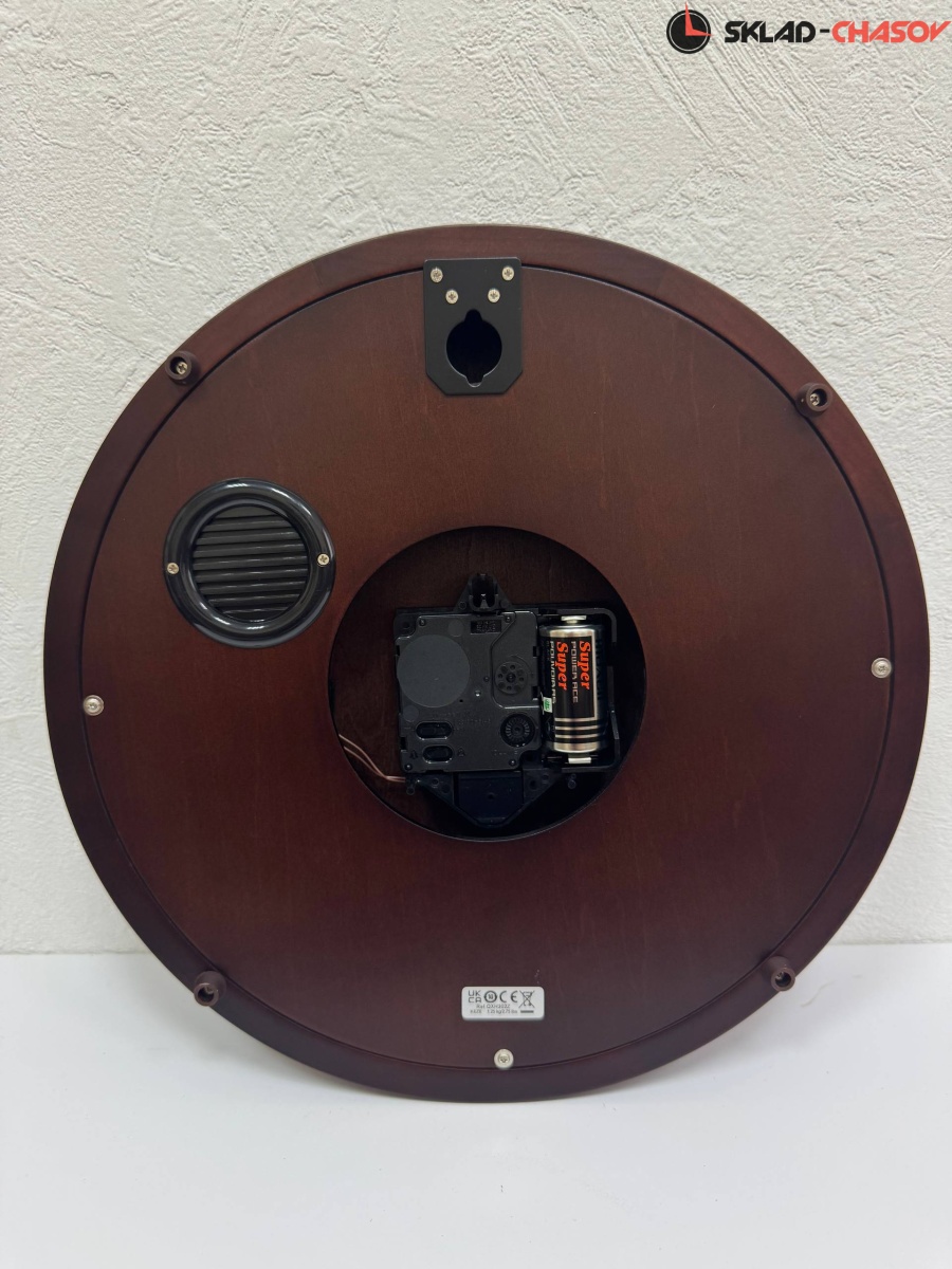 Кварцевые настенные часы с боем. На выбор две мелодии: Westminster/Whittington. Бой каждый час, каждые 1/4 часа мелодия. Автоматическое отключение мелодии и боя на ночь с 23.00 до 5.45 ч. Контроль громкости. Стрелки: черная часовая, черная минутная. Корпус выполнен из дерева.