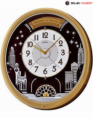 Кварцевые настенные часы с вращающимся маятником, корпус сделан из пластика, размер 46.8 x 42.4 x 10.9 см , 12 мелодий, мелодия каждый час, датчик освещенности, контроль громкости, батарейка: 4 шт. D в комплекте