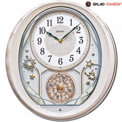 Кварцевые настенные часы,корпус сделан из пластика, каждый час мелодия, 18 мелодий превосходного качества звучания A, B & X/ Вестминстер, кнопка демонстрации, контроль громкости, вращающийся маятник, датчик освещенности, батарейки: С х 2 шт , АА х 3 шт. в комплекте