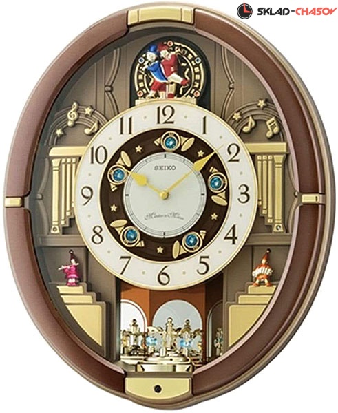 Кварцевые настенные часы с вращающимся маятником, корпус сделан из пластика, размер 46.5 x 38.4 x 10.1 см , 30 мелодий превосходного качества звучания, мелодия каждый час, датчик освещенности, контроль громкости, демонстрационная кнопка, батарейка: С х 4 шт, АА х 1 шт. в комплекте