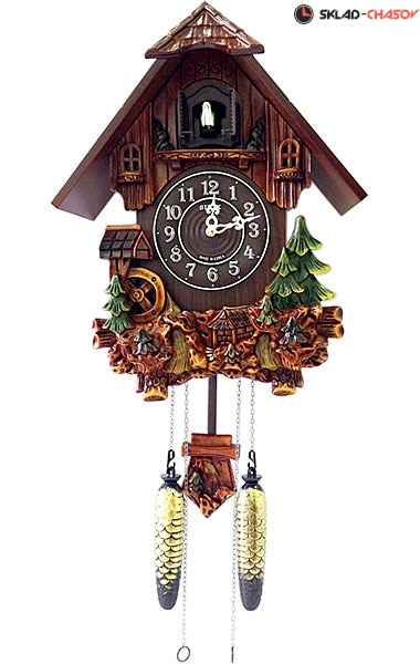 Часы с кукушкой оснащены кварцевым механизмом и фотоэлементом, который автоматически переводит часы в ночной режим работы; в темноте кукушка не срабатывает). Корпус часов изготовлен из дерева, MDF.