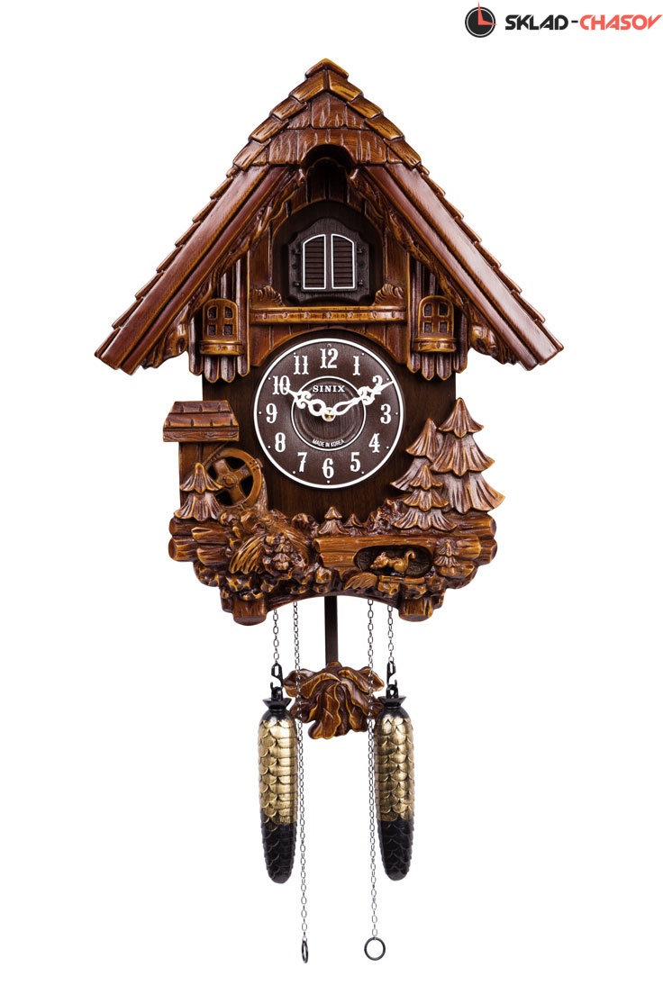 Часы с кукушкой оснащены кварцевым механизмом и фотоэлементом, который автоматически переводит часы в ночной режим работы (в темноте кукушка не срабатывает). Корпус часов изготовлен из дерева и MDF. Размеры упаковки: 49х42х21 см.