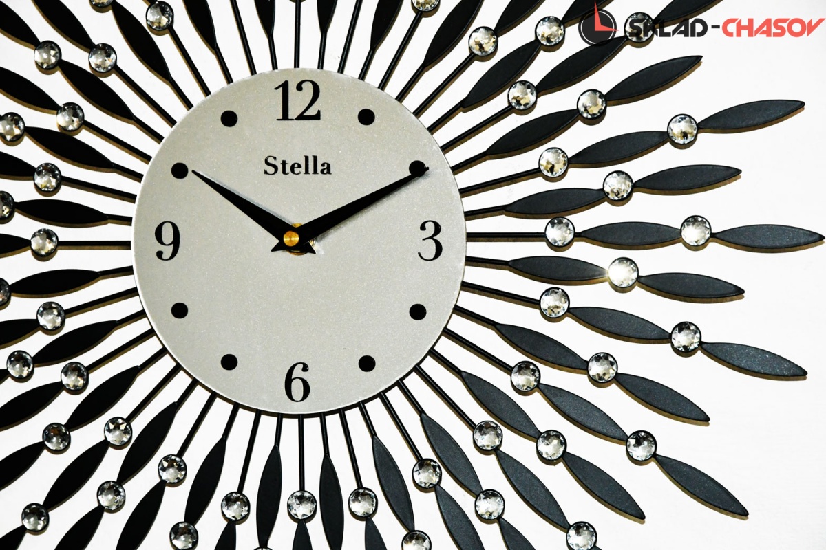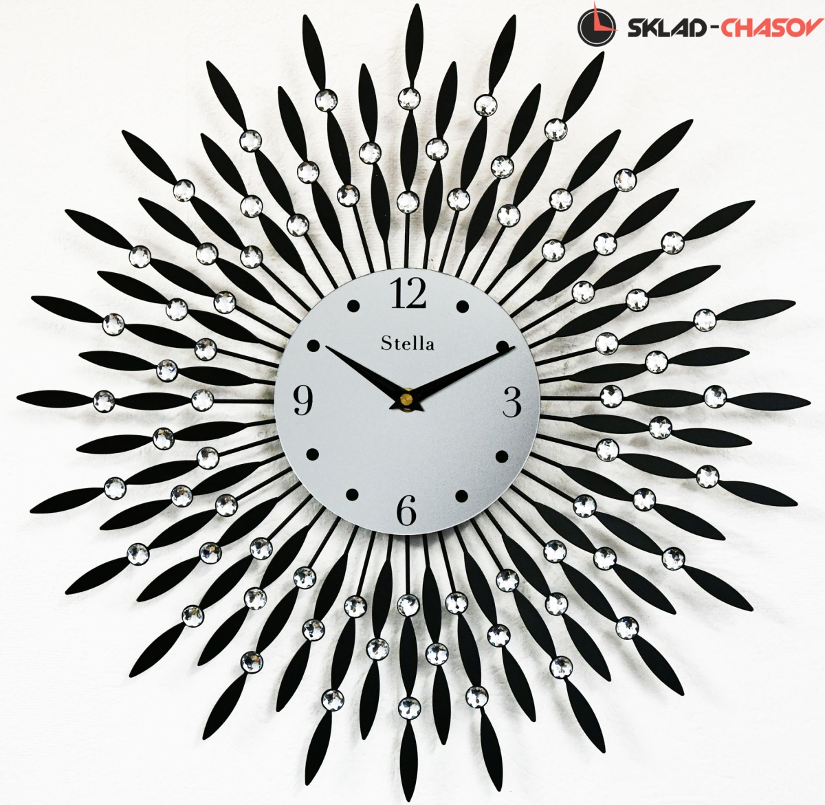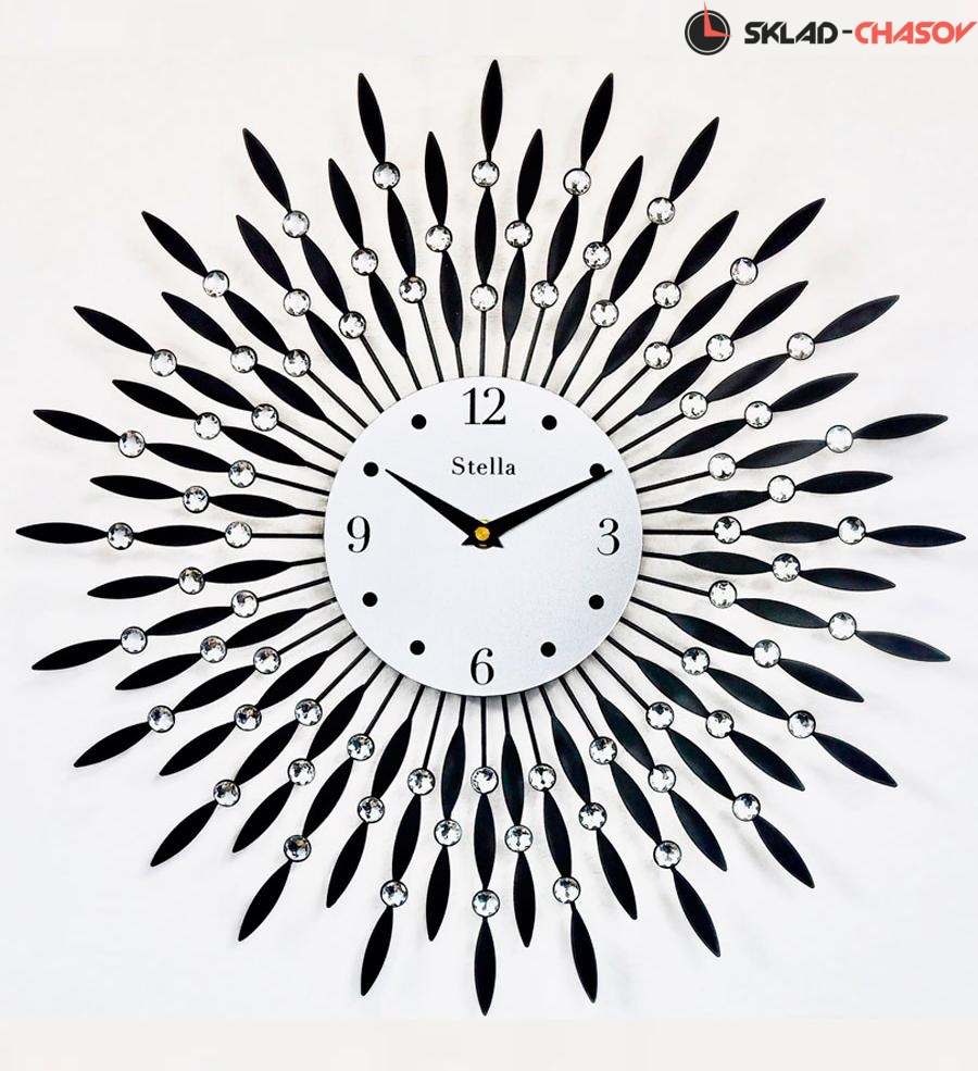 Настенные кварцевые часы в металлическом корпусе с акриловыми кристаллами. Стильные и доступные по цене интерьерные часы южно-корейской марки «Stella» помогут сделать Ваш дом уютнее, а образ жизни согласованным. Синхронизируя Ваши замыслы с процессами окружающего мира, оригинальные дизайнерские часы станут незаменимым помощником реализации ваших планов. Корпус декорирован металлическим украшением в форме растительных элементов с акриловыми кристаллами. Тип механизма: кварцевый. Тип питания: от батарейки. Способ отображения времени: аналоговый (стрелки). Ход часов: плавный, бесшумный. Материал корпуса: металл, акрил. Форма корпуса: круглый, фигурный. Цвет корпуса: черный. Цвет циферблата: белый. Индексация: арабские цифры и точечные метки. Стрелки: часовая, минутная. Габариты изделия (см): 44x44x4. Страна изготовитель: Южная Корея.