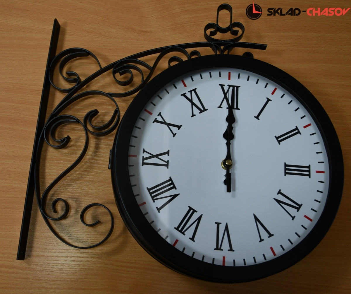 Двусторонние часы на кронштейне Stella ST1747 оснащены кварцевым механизмом бесшумного хода.