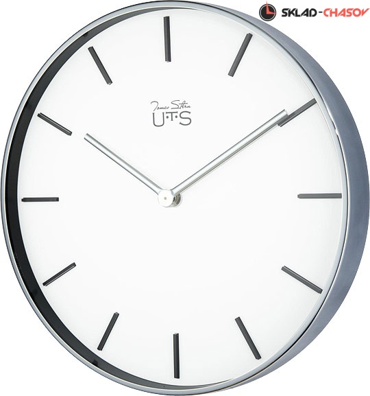 Настенные часы в глянцевом металлическом корпусе. Белый циферблат с объемными метками черного цвета. Закругленные стрелки отделаны в цвете хром. Циферблат закрыт стеклом. Кварцевый механизм Young Town (Гонконг). Требуется 1 батарейка типа АА (не включена в поставку).